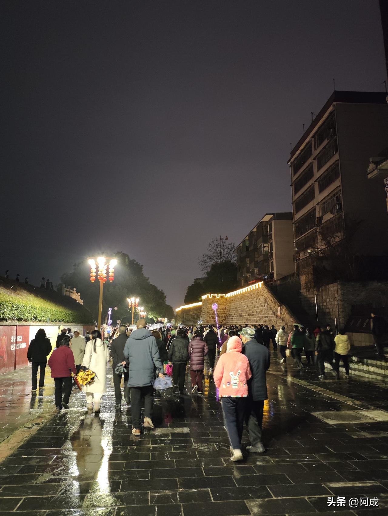 夜幕降临,我们去逛元宵灯会。现场早已人山人海,摩肩接踵的人群里满是节日的欢喜。舞台上的节目轮番上演,歌声与掌声交织;灯谜区的红纸条随风轻扬,不少人驻足沉思,偶尔传来猜对的雀跃声;各式灯笼次第亮起,将夜色映得温暖明亮。 女儿攥着我的手,满眼期待地想要一盏灯笼。我给她挑了个精致的小灯笼,暖黄的光在她掌心跳动,她笑得格外开心。 不料天公不作美,细密的毛毛雨忽然落下,打湿了灯影与人潮。我们又逛了一会儿,便带着小小的遗憾,提着灯笼回家了。