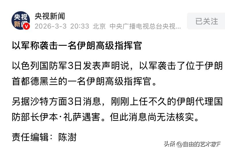 上任仅一天,伊朗代理国防部长遇害,或和两个原因有关 就在刚刚以色列国防军发声明称,在3月3日的时候,以色列方面击杀了伊朗的一名高级指挥官。 随后,沙特媒体指出遇害高官,就是在3月2日伊朗总统任命的伊朗代理国防部长伊本·礼萨遇害。 目前伊朗方面并未确认该条信息。此人是伊朗前国防副部长,准将军衔,他在革命卫队中的威望很高,熟悉伊朗军事架构、在原防长去世之后,被视为最适合接任国防部长职位的人,结果没成想上任一天就遇害,属实是让人没有想到,目前对其死因并未公布。 但是不排除有以下两种可能: 1、在空袭中丧命 2、3月3日的时候,沙特媒体曾爆料在3月2日夜间一支以色列的特种部队和摩萨德特工趁着夜色了伊朗境内,不排除由内鬼策应出卖了这位新国防部长的坐标被人暗杀。 对于该事件,我们是怎么看的伊朗新国防部长的遇难,可能影响不了伊朗内部作战系统的稳定,但是在大反攻期间,上任近一天就被杀害,势必会影响伊朗革命卫队内部的士气。同时也说明仍有内鬼正在潜伏在伊朗内部最高层的位置发挥着重要的作用,这一点伊朗不得不防