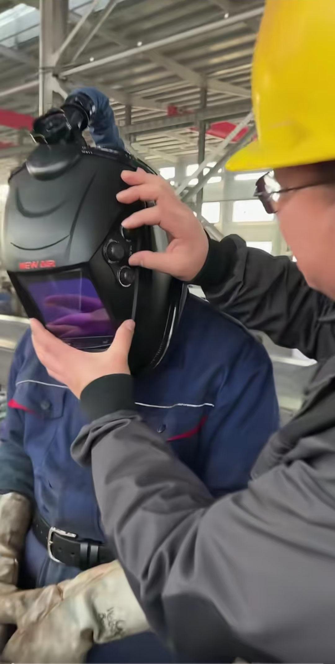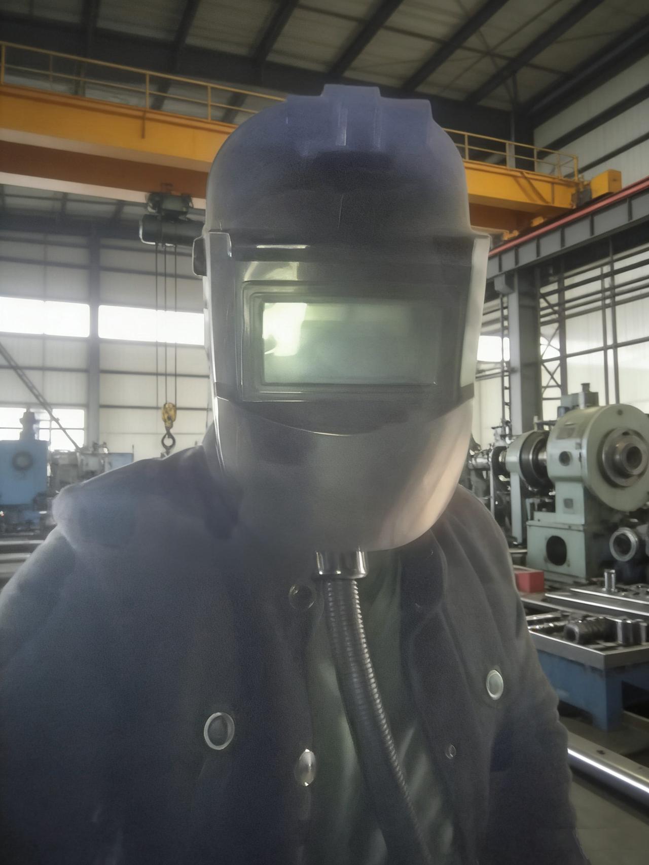 我自己设计制作的电焊正压送风空气过滤系统+自动变色防弧光面罩 成本不到一百块(图1~3)[害羞] 嘎嘎好用!主机用一个塑料方形盒子壳体自己打洞,用DC12V串列式暴力高速风扇作为泵送空气的动力核心,比同类送风面罩的送风能力更强劲!动力电源可内置锂电池,也可附加外部电池座,可接插锂电钻等电动工具的配套电池,非常方便!搭配一块可调电压的电源模块,将电池电压处理成送风风扇的工作电压,也可通过调压旋钮调整电压,以调节送风风扇的转速从而调整送风风量的大小,十分方便! 面罩使用带自动变色防弧光面罩,带一个两档亮度调节的头灯,焊接时不仅解放了一只手从而可操作焊接工件,头灯更能在光线不足的情况下给予正在操作的焊接部位补光,是我们的焊接工作更加轻松方便,同时避免了呼吸焊接时的有毒有害气体! 参考的其他产品如图3~9 人家那一整套可不便宜,咱只好自己动手,也能给工人更舒适健康的工作条件!