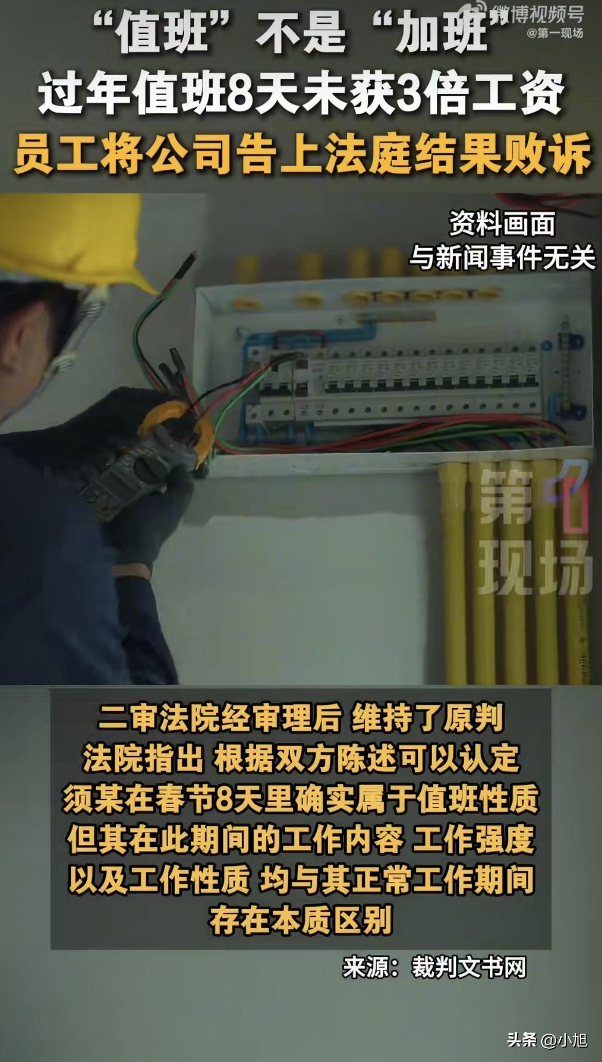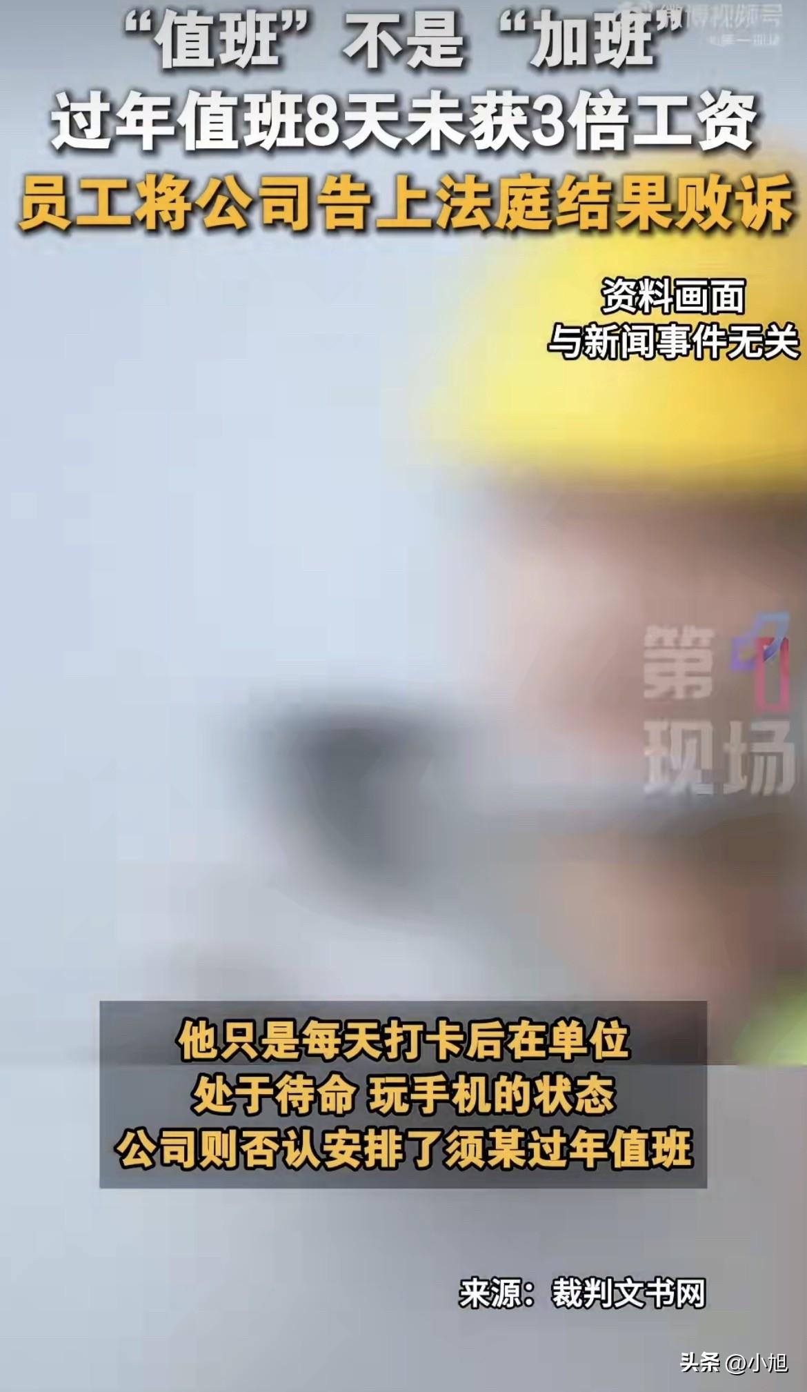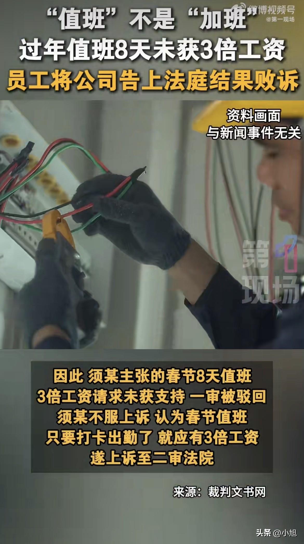 江苏无锡一个机电维修工,春节过后把公司告上法庭。 他要的是正月初一到初八,8天值班的3倍工资,一共6240块。 庭审的时候,法官问他这8天在公司干了什么。 他实话实说:值班就是为了应对特殊情况,负责救援和普通维修。但这8天里,什么事都没发生,他每天就是打完卡,在单位待着玩手机。 公司那边更绝,直接否认安排了值班。 两边各说各的,但有一点双方都认:这8天,确实什么事都没发生,他确实玩了8天手机。 一审法院看完材料,不支持他。 法院的理由很硬:值班和加班是两码事。值班期间,他基本就是待命玩手机,没有实际救援任务,工作内容、工作强度跟平时完全不一样。而且他也拿不出证据证明公司安排了加班。 须某不服,上诉了。他的逻辑特别简单:春节我打卡出勤了,就该拿3倍工资。 二审法院维持原判。 法官进一步解释,根据双方陈述,确实能认定他这8天是值班性质。工作内容、强度、性质,跟正常工作有本质区别。 据中国裁判文书网公布的判决书显示,法院从三个维度区分了值班和加班: 工作目的不同。加班是为了完成经营性工作,值班是为了保证生产经营连续性,防着突发事件。 工作内容不同。加班跟平时干的一样,值班主要是消防、安全、行政这类,跟本职工作不一定相关。 工作强度不同。加班不能休息,值班通常可以休息。 北京大成律师事务所的黄盛美律师解释得更透: 《劳动法》规定的法定节假日300%工资,前提是劳动者在节假日根据单位安排"提供了正常劳动"。而且主张加班费的人,得先拿出证据证明自己加了班。 须某虽然能证明打卡了,但8天都在"待命+玩手机",没干任何维修活,工作强度跟平时不一样,不符合"加班"特征,所以不适用300%加班费。 这事一出来,评论区直接吵翻了。 有人说,不合理,值班也是公司强制安排的,凭什么不给钱。 有人直接点出关键,案子焦点应该是公司到底有没有安排他值班。 还有人说,只要劳动者拿出加班证据,就该给3倍工资。 但问题是,他拿出的证据是打卡记录,可打卡记录只能证明他人在单位,证明不了他干了活。 法官看的是实质,不是形式。 你人在单位玩手机,和你在单位干活,在法律上就是两回事。 这事给所有打工人提了个醒。 春节值班,到底算值班还是算加班,不看你在哪儿,看你干了什么。 你要是真在干活,保留证据,该拿的3倍工资一分不能少。 你要是就是坐着玩手机,那不好意思,这可能真不算加班。 你们怎么看。