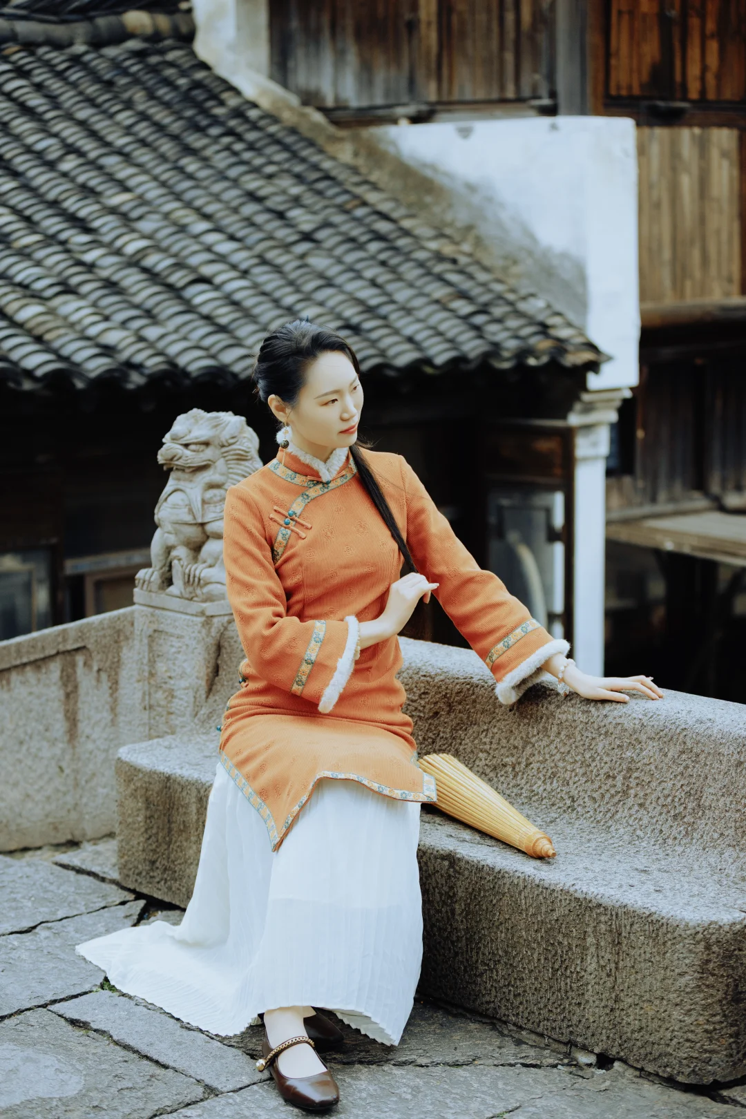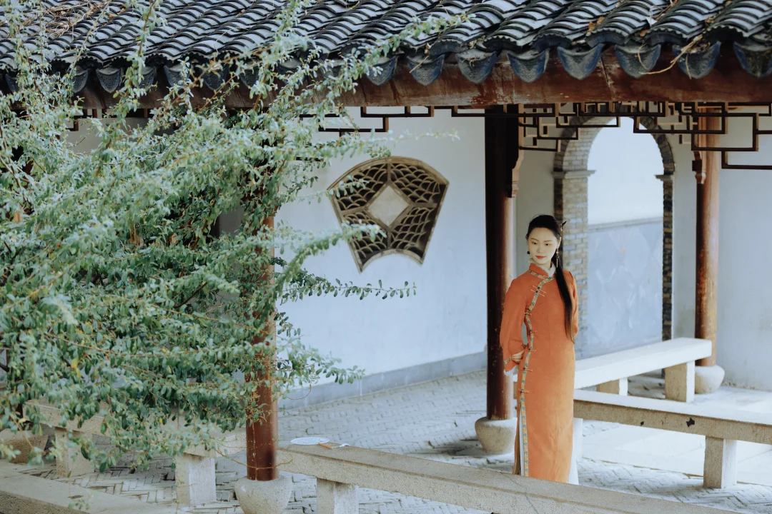 橘色旗袍也太温柔了叭 约拍