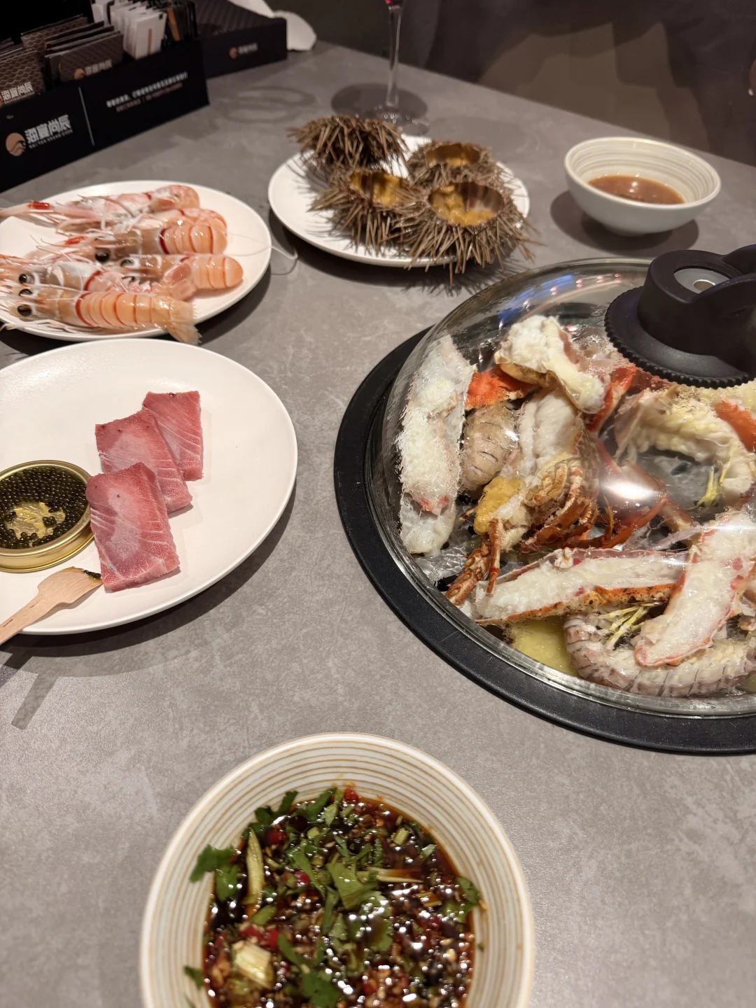 预约前台给人的感觉特别不友好 会一直打电话催你 声音态度让人感到不适,人少的话建议勤拿少取,蒸太多容易冷 而且肉会变老 没那么好吃了,蒸锅的时间建议比预设时间提前一分半左右开盖 会更嫩更甜 看个人喜好,如果需要剥虾服务要主动提 感觉成都店太忙了 顾不过来 。总体来说 是一个我可以实现海鲜自由的快乐食堂!被美食满足的一天