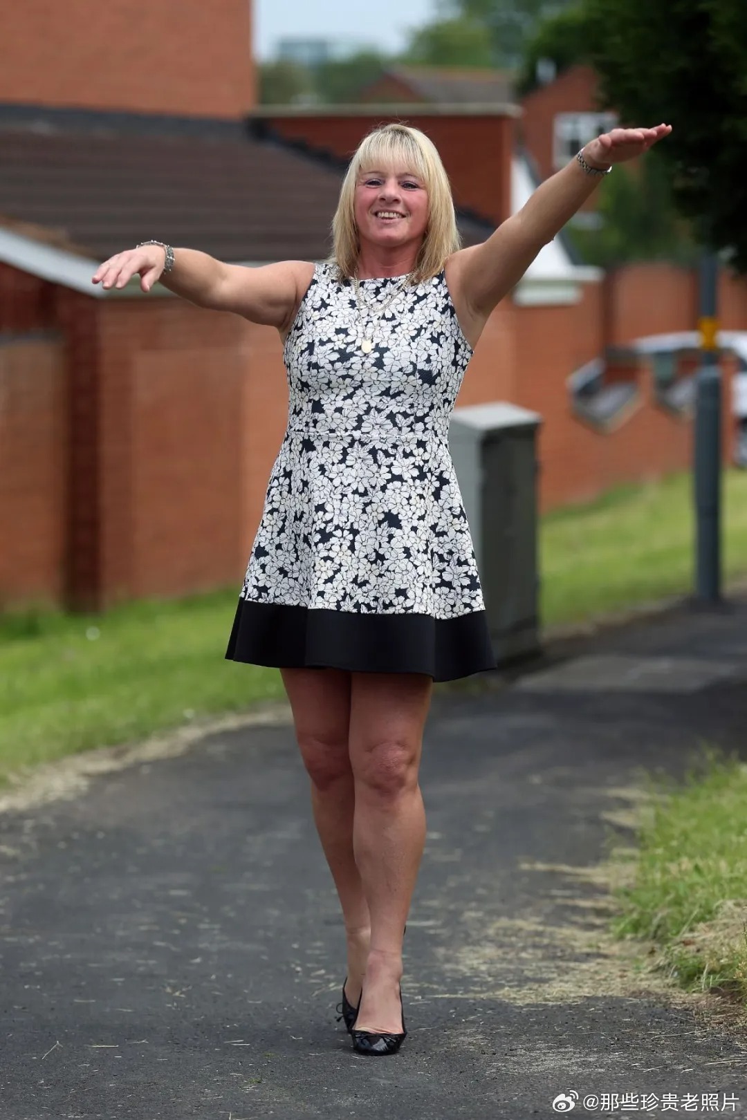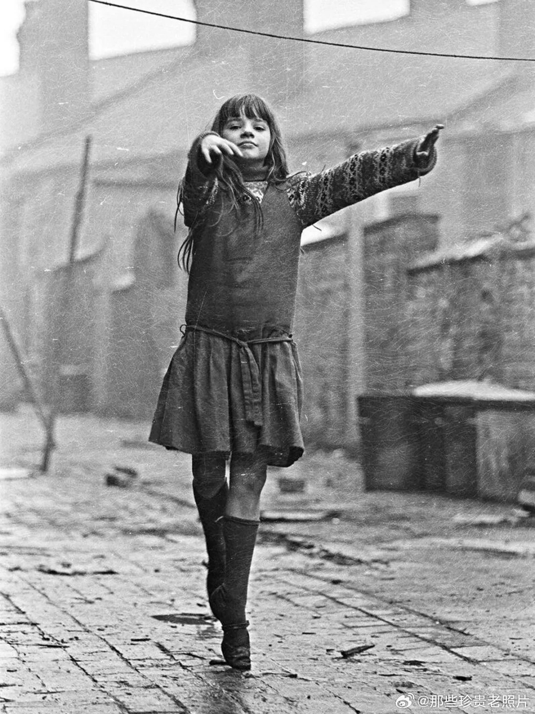 1968年英国,一名女孩在阴雨天练习跳芭蕾舞1968年,英国伯明翰巴尔萨尔希思地区,一名小女孩在雨天中,阴冷潮湿,泥泞的街道上练习芭蕾舞。由珍妮特·门德尔松拍摄。这是珍妮特在伯明翰大学读书时,作为一个研究项目的一部分拍下了这个小女孩。这张照片是她在20世纪60年代末拍摄的数千张照片中的一张。最近,练习芭蕾舞的女孩的照片出现在城市美术馆举办的门德尔松女士摄影展上,这张照片很引人注目,但作者和观众人都不知道这个女孩是谁 。照片拍摄在伯明翰巴尔萨尔希思地区的瓦尔纳路,这条路曾被称为“英国最邪恶的路”,位于伯明翰红灯区的中心。这引起了伯明翰《每日邮报》记者安迪·理查兹的注意,他开始在社交媒体支持下寻找这个芭蕾舞女孩。也导致她的照片形象被分享到世界各地,照片俘获了一大群支持者的心和想象力。在社交媒体上发出的求助呼吁下。几天内就有不少人回复,最后有几个人提了她的名字:洛林·威廉姆斯,还认出了她的孪生妹妹温迪。在他们的帮助下,伯明翰邮报最终找到了她,发现她现年58岁了。她仍然住在这附近,已经是三个孩子的母亲和八个孩子的祖母。邮报记者寻找她的经过,照片的作者门德尔松女士也看到了,她目前已经70多岁了,住在美国波士顿。她发消息说“很高兴看到这些”。她的其他一些照片以前曾在全市的展览中使用过。据说门德尔松女士“很惊讶于她的作品现在有这么大的吸引力”。在照片拍摄50年后,芭蕾舞女孩洛林说:我对此感到非常惊讶。芭蕾舞女孩照片在全世界被分享,“想到你和你的读者参与了这么大的寻找我的行动,我还一时很难接受。”当有人给我看照片时,我简直不敢相信。但那是我,尽管那是很久以前的事了,我仍然依稀记得当时的情景。我一直假装自己是芭蕾舞演员,跳芭蕾舞一直对我有一种魅力。现在也是。我不知道这个理想是从哪里来的,我一定是在什么地方见过芭蕾。“但成为芭蕾舞演员是我的梦想之一。”在找到洛林后,邮报和伯明翰皇家芭蕾舞团一同为她安排了一堂惊喜的芭蕾课,洛林又重现了芭蕾舞女孩照片的姿势。尽管她对成为芭蕾舞演员是她儿时的梦想,但她却从未真正在剧场观看过芭蕾舞。因此,伯明翰皇家芭蕾舞团又邀请洛林观看了他们的一场演出。洛林说,那真是一个令她兴奋而终生难忘的夜晚。