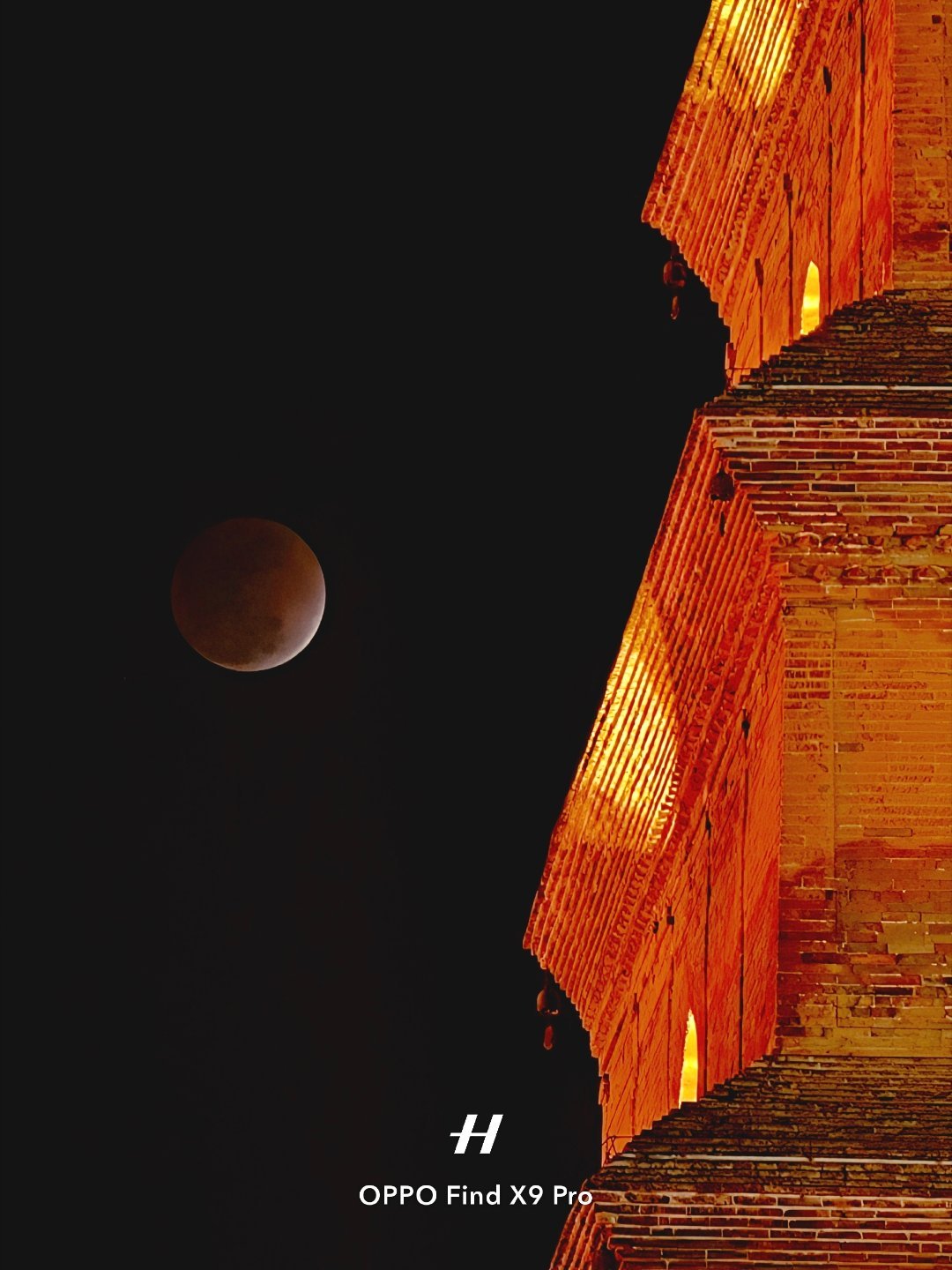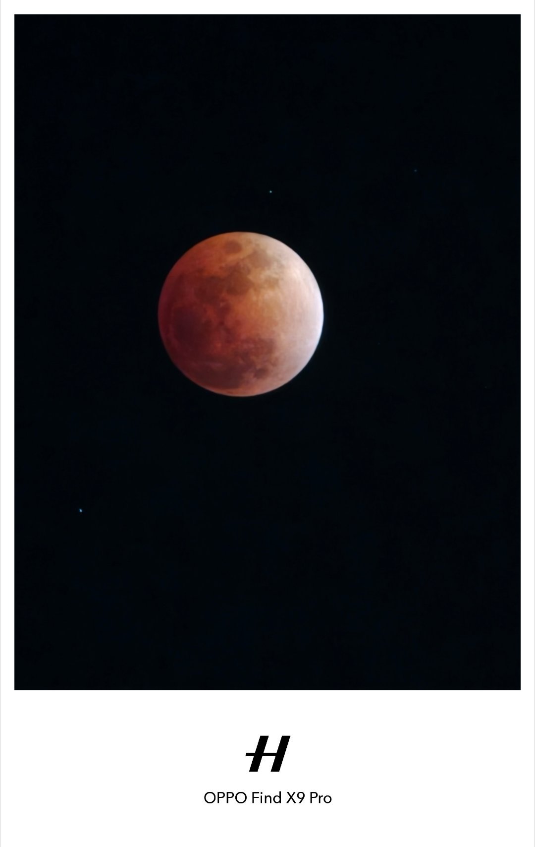 月全食OPPO Find X9 Pro拍下的元宵节红月亮