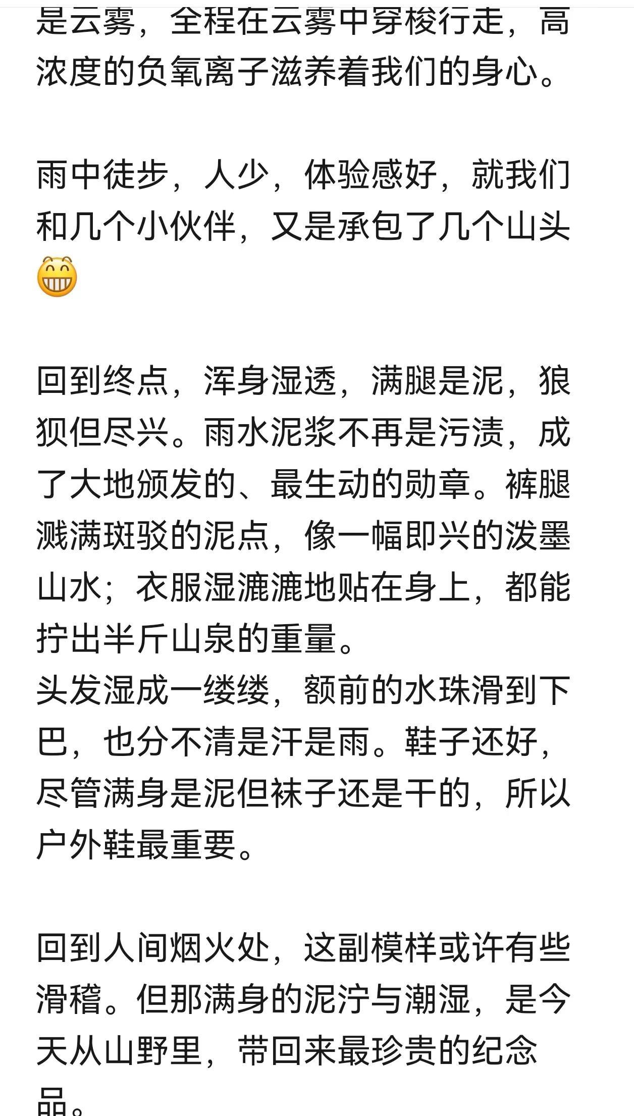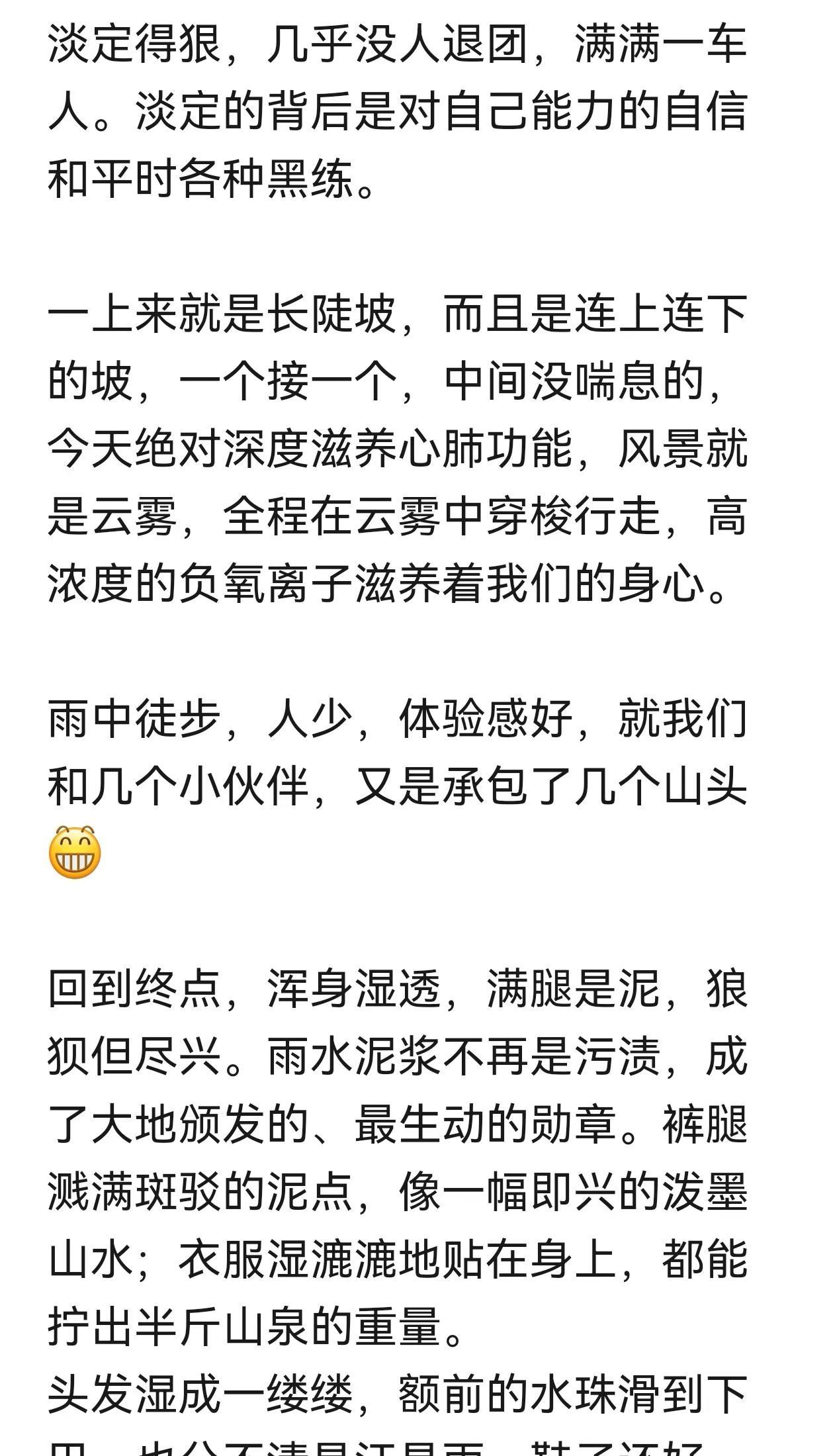 昨去杭州爬了个大金刚大环 14km 爬升1400等于1:1一天的雨 一车伙伴 没有一个退的 这是一个小伙伴写下了 一路真实过程 图片采纳的是伙伴偷拍的我 一路闻花香 蜂蜜香 不渴 不饿 不尿 六点🕕回城 把大自然的馈赠带回家❤🙏🏻