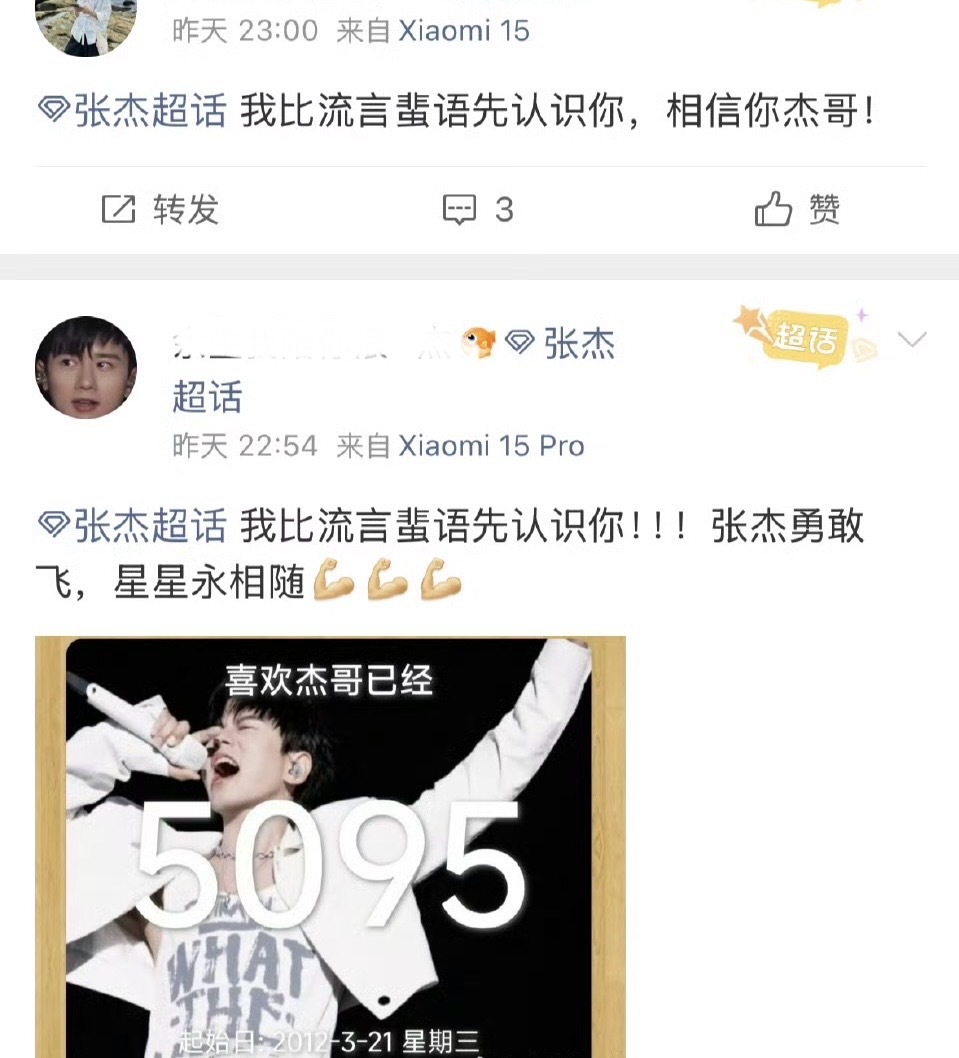 薛之谦张杰粉丝还是有点默契的,都在说“我比流言蜚语先认识你,始终相信你”。这是饭
