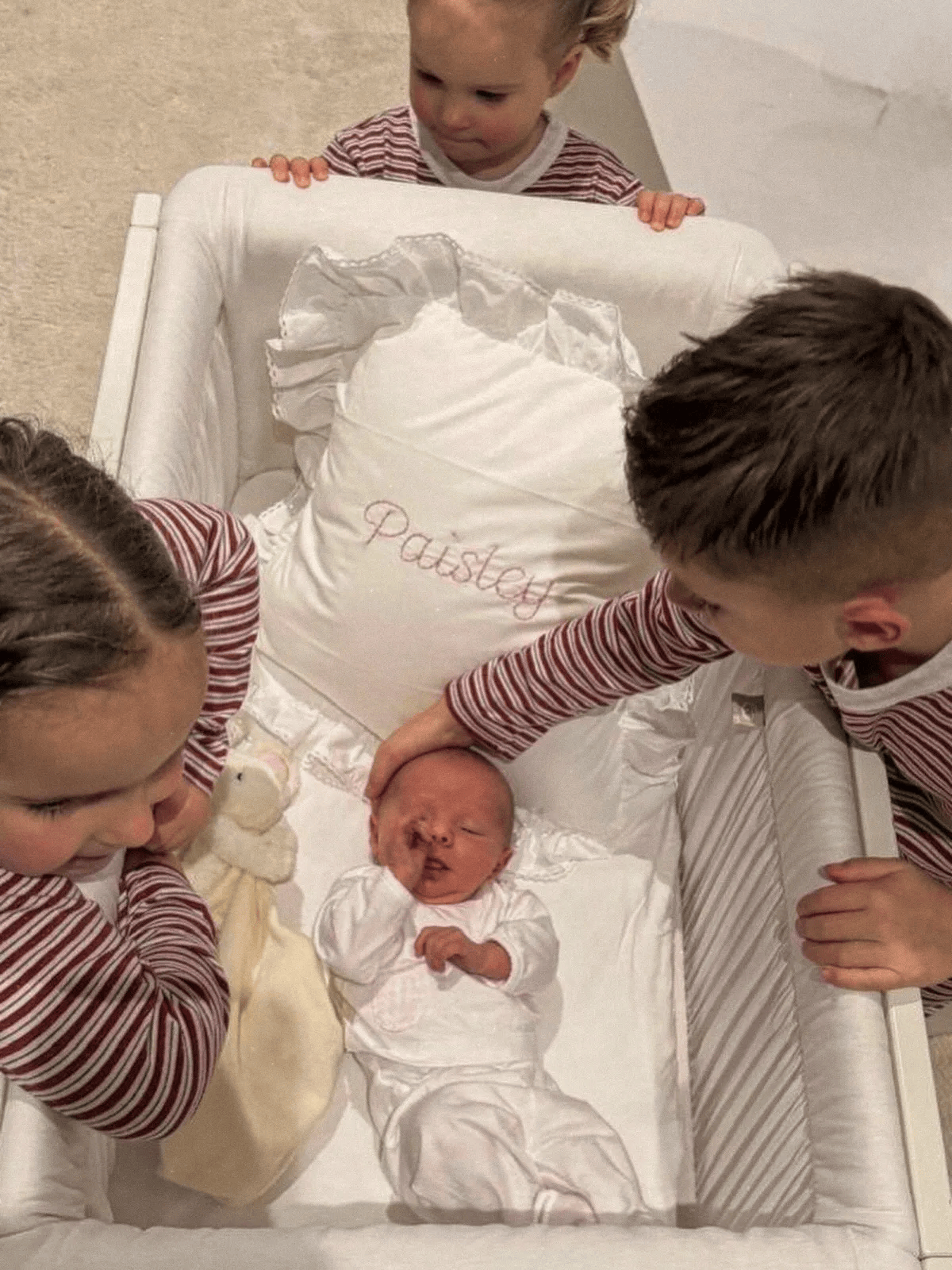 报道称,卢克-肖与女友的第四个孩子是个女儿,而这也是两人的第三个女儿。AnouskaSantos在Ins上向粉丝们分享了一系列温馨的产后照片,宣布了生娃的好消息。在这组治愈系照片中,有一张是她抱着家庭新成员对镜自拍的照片,还有一张是小婴儿在婴儿床里被哥哥姐姐们围绕的暖心画面。