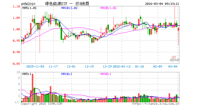 3月4日,绿色能源ETF(562010)开盘跌1.49%,报0.993元。绿色能源ETF(562010)重仓股方面,宁德时代开盘跌0.86%,长江电力跌0.63%,比亚迪跌0.01%,阳光电源跌1.75%,隆基绿能跌2.11%,华友钴业跌1.90%,亿纬锂能跌1.58%,赣锋锂业跌1.62%,天赐材料跌0.64%,天齐锂业跌1.71%。