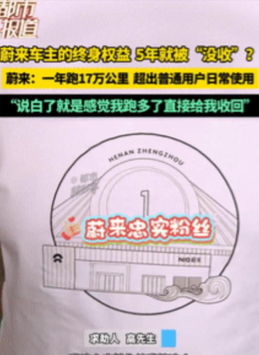 “彻底解释不清了!”河南,一男子5年前花60万买了自己的梦中情车,蔚来!可前不久一出门,手机突然弹出一则消息,竟然提示他的终身权益被收回!理由是:他的车一年跑了17万公里,车企认为这"超出了普通用户日常使用范围"。男子作为蔚来的忠实粉丝,就连接受采访时穿的还是印有蔚来logo的衣服,万万没想到居然被背刺了!网友:“买车不开,难道在车库里供着吗?” 高先生像往常一样准备开车出门,手机突然弹出一条来自蔚来官方的短信,短短几行字,让他瞬间愣在原地,浑身冰凉。 短信里明确告知,他作为首任车主享有的终身免费换电、终身质保等核心权益,将在7个工作日后被正式取消,给出的理由是他的车过去一年跑了17万公里,超出了普通用户的日常使用范围,被认定为“特殊使用目的”。 这个消息,像一盆冷水,浇灭了高先生五年来对蔚来的所有信任和热情。 了解内情后才知道,高先生做的是跨区域生意,经常需要在江浙沪、广东等沿海城市之间来回奔波,有时候一天跑上千公里都是常事。 五年来,这辆蔚来ES8陪着他跑遍了大半个中国,既是商务伙伴,也是家庭出行的好帮手,五年总里程累计28万公里,去年一年就跑了17万公里,折算下来日均超过465公里,这确实不是普通家用车能达到的里程数。 但高先生始终强调,自己的车是非营运性质,既没出租也没跑网约车,所有里程都是正常商务出差和家庭使用产生的,没有任何违规。 更让他无法接受的是,当年买车时,蔚来官方承诺“首任车主不限里程、不限时间的终身质保和免费换电”,签署的权益告知书里,只明确车辆用于出租、营运等特殊用途时权益会被收回,压根没提“年行驶里程上限”,也没有界定“普通用户日常使用范围”。 高先生找蔚来客服沟通,对方只反复强调他的里程远超行业标准,符合权益收回条件,却始终说不出具体判断标准,也拿不出任何违规证据。 不止高先生一人遭遇这种事。 这件事在网上发酵后,迅速引发全网热议,网友们吵得不可开交。 很多网友站在高先生这边,吐槽蔚来“玩不起”,有人直言“买车就是用来开的,凭什么跑多了就取消权益? 难道要供在车库当摆设吗”,还有人担忧,国产车好不容易攒下的用户信任,会被这样的操作消耗殆尽。 也有部分网友质疑,一年17万公里远超私家车年均1-2万公里的水平,日均465公里接近出租车强度,难免让人怀疑营运。 高先生花60万买车,图的就是蔚来的终身权益,他正常用车、没有违规,仅凭里程就被单方取消权益,换谁都会觉得委屈。 蔚来担心高里程带来的损耗和成本压力,有一定合理性,但这不能成为单方撕毁承诺的理由。 最关键的是,蔚来当初宣传和签协议时,没明确“日常使用范围”的里程阈值,也没提示高里程会丧失权益,事后却以模糊理由取消权益,既违背契约精神,也涉嫌违反《消费者权益保护法》。 法律界人士明确表示,蔚来若无法举证车主违规,单方取消权益就属于违约,需承担责任、保障车主权益。 截至目前,蔚来仍未给出明确里程标准和违规证据,只口头说“车主违约”,甚至建议车主走法律途径。 车企的“终身权益”,本该是吸引消费者的底气,而非敷衍的噱头。 高先生的遭遇,不仅是他个人的维权困境,更是对新能源行业的警示,诚信是企业长久发展的根本,承诺的权益就该说到做到,模糊条款、单方违约,最终伤害的是用户信任和自身品牌。