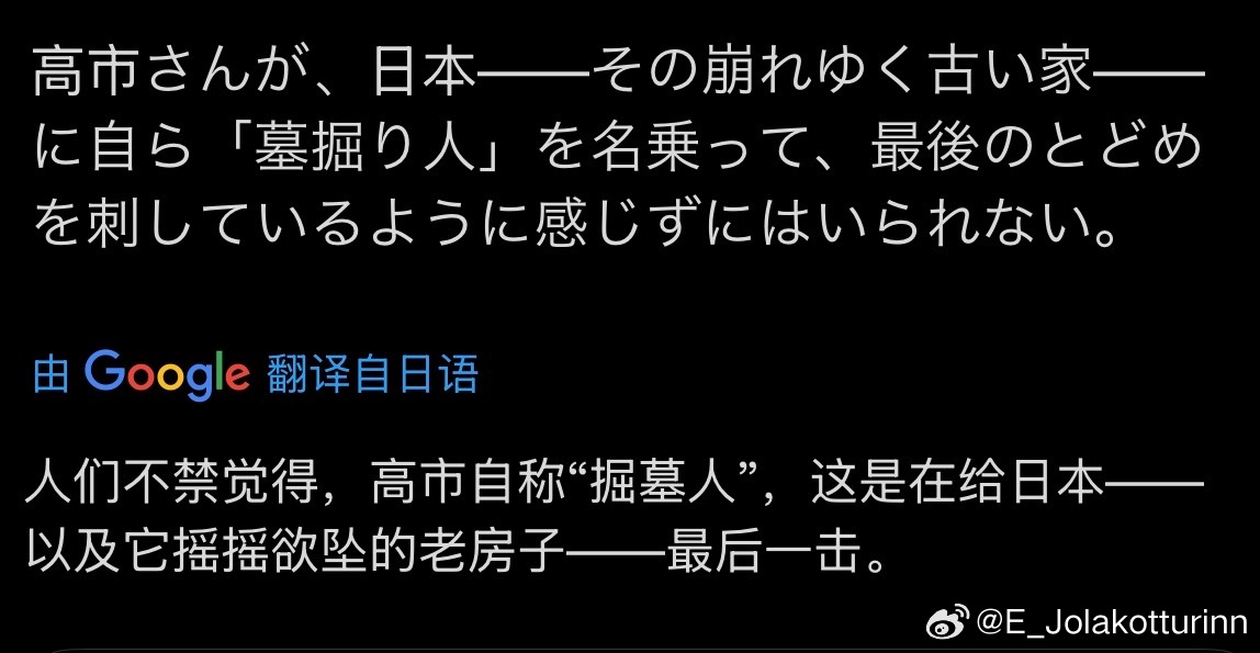 1. 高市早苗就像在为日本这个摇摇欲坠的破屋,亲手搭上那临门一脚的“掘墓人”。
