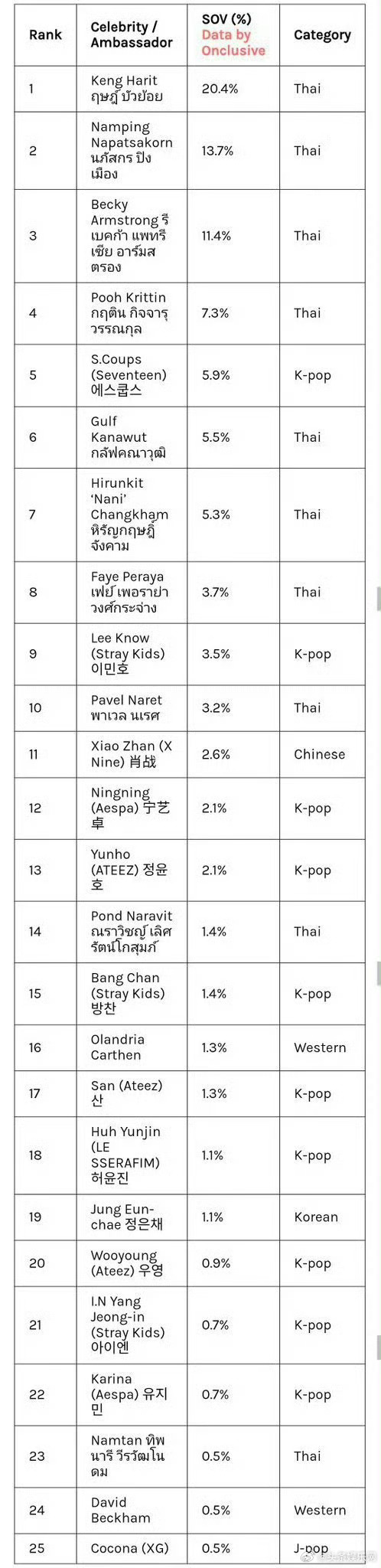 米兰时装周期间,的大使声量排名,第一二名居然是KengNamping,家产还是太