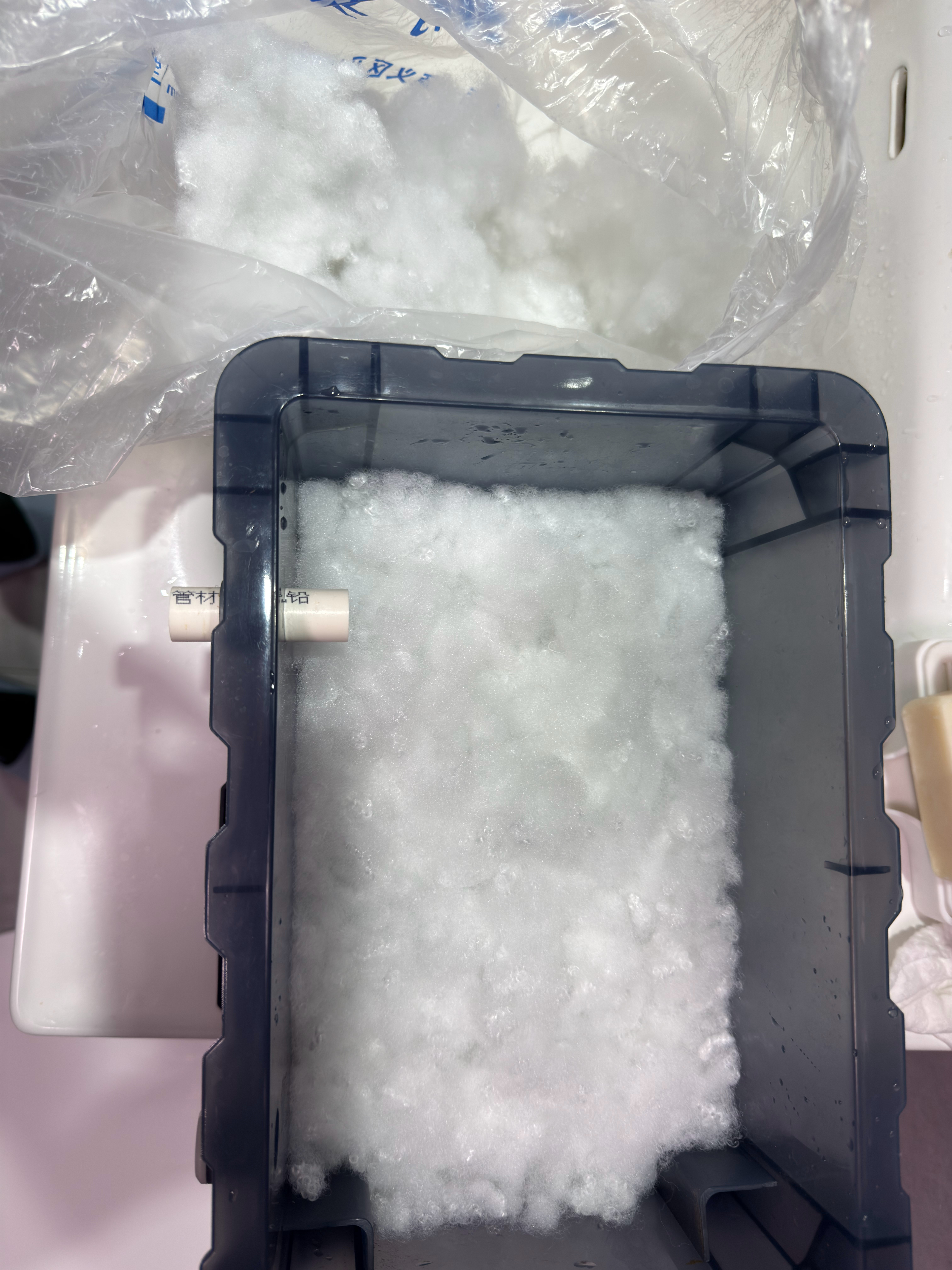 有次硬嫂要扔一堆从毛绒玩具还是靠枕里拆出来多余的填充棉,我说给我吧当过滤棉试试,意外发现太好用了