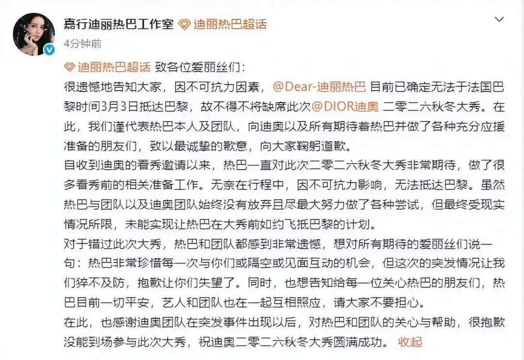 迪丽热巴迪拜滞留超三天,转机原因曝光,缺席巴黎时装周 中东局势突然恶化,阿联