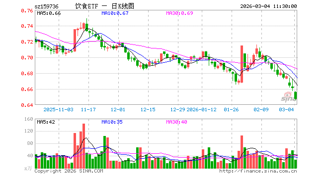 3月4日,截止午间收盘,食品饮料ETF天弘(159736)跌2.12%,报0.647元,成交额1740.50万元。食品饮料ETF天弘(159736)重仓股方面,伊利股份截止午盘跌1.77%,贵州茅台跌2.00%,五粮液跌1.65%,泸州老窖跌3.86%,山西汾酒跌3.40%,海天味业跌1.28%,东鹏饮料跌1.69%,洋河股份跌1.66%,双汇发展跌1.23%,安琪酵母跌0.24%。