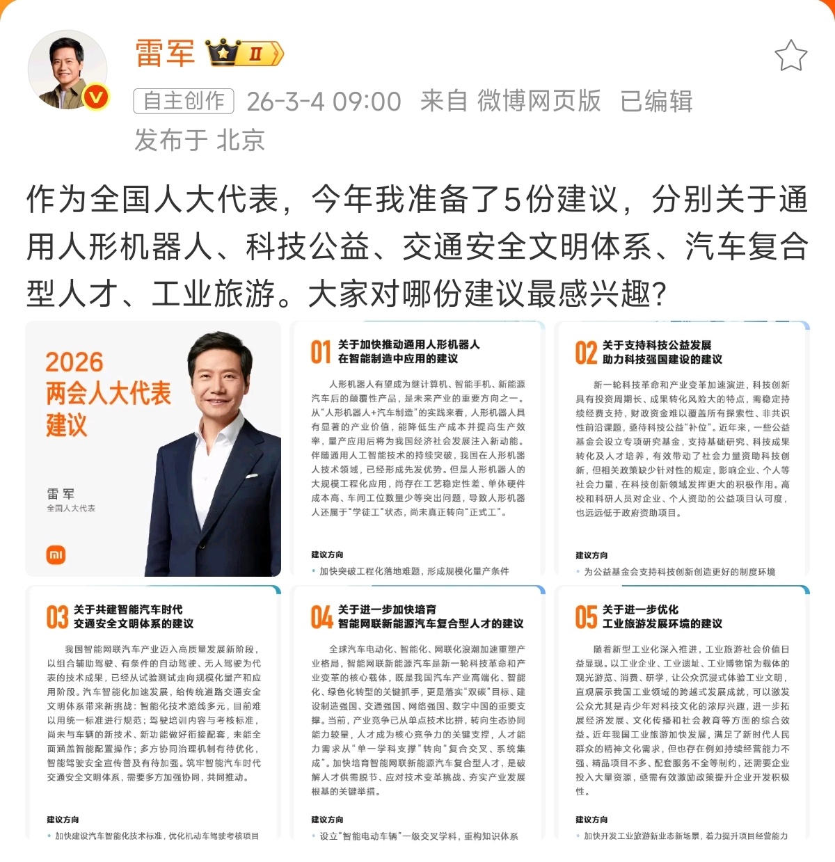雷军建言把智驾内容纳入驾考 雷总这项提议太有前瞻性以及实用性了。