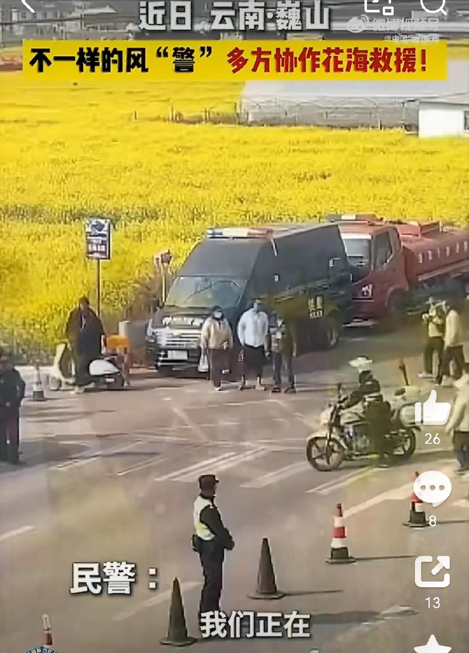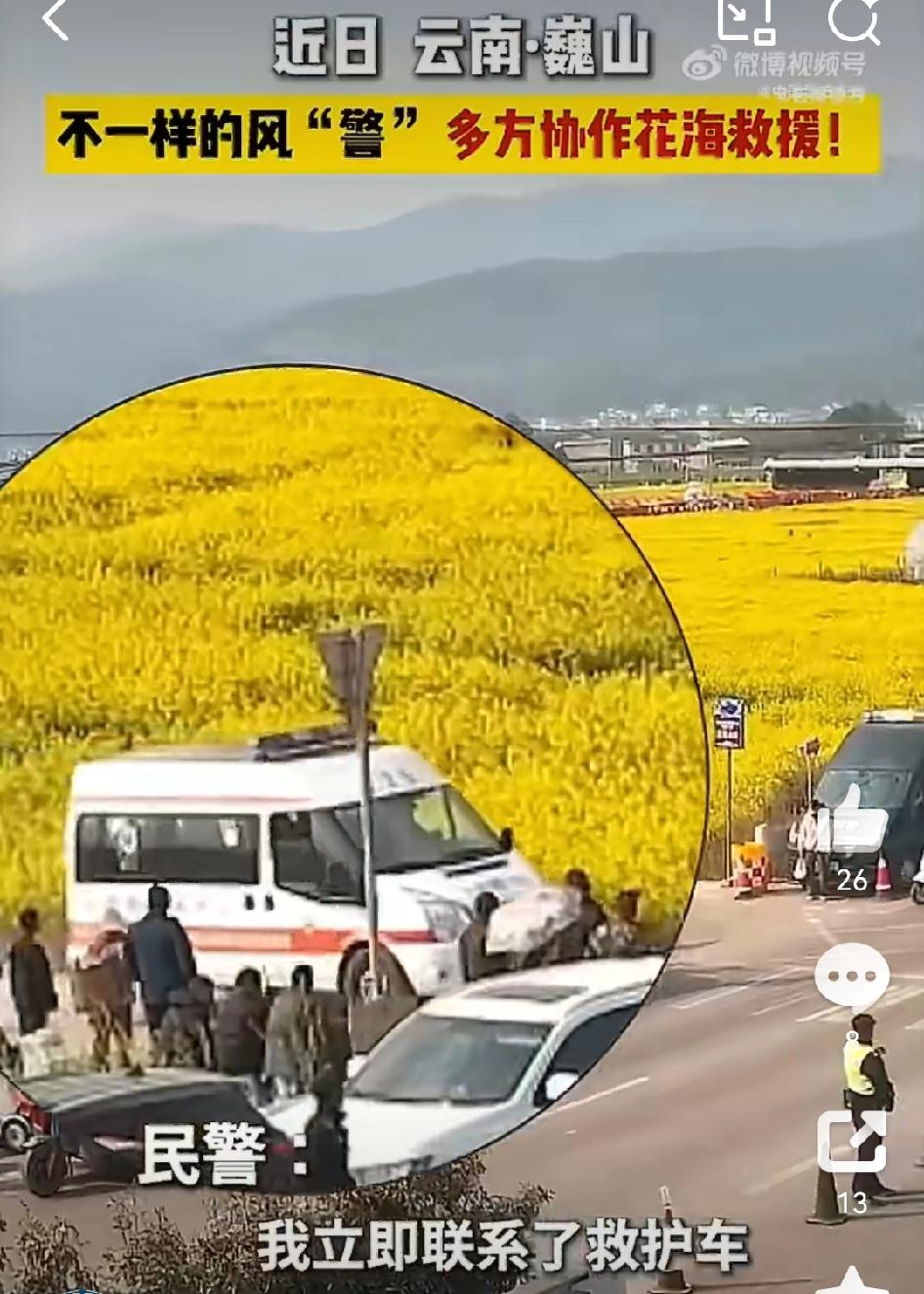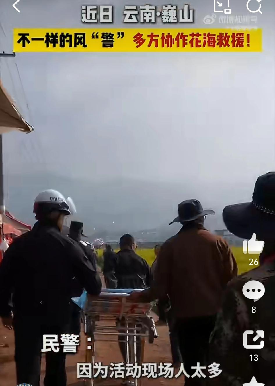 【多方合力花海救援晕倒孕妇】 最近云南大理巍山,一名孕妇游玩时晕倒,大理公安接求