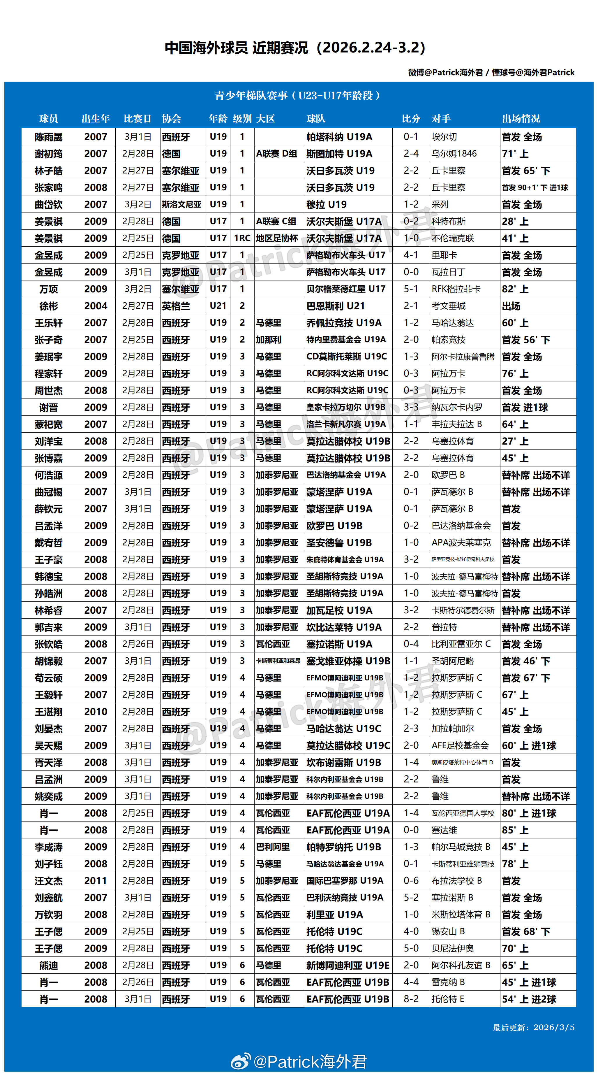 西班牙男足联赛体系概览(2025/26赛季)网页链接 2025/26赛季中国海外球员数据一览(成年)网页链接 2025/26赛季中国海外球员数据一览(青少年)网页链接