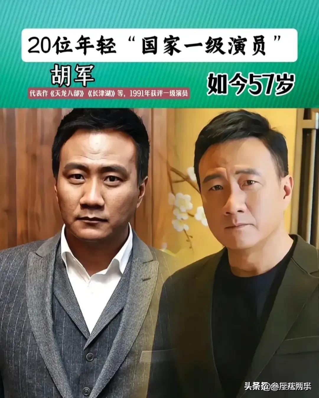 这些“国家一级演员”都是咱自己人!看看他们的代表作和近况 先说王劲松,江苏无锡人,1967年出生,今年58岁。他是2021年获评的国家一级演员。 王劲松这名字,恁肯定熟。《琅琊榜》里的言侯爷,《破冰行动》里的林耀东,《大明王朝1566》里的杨金水,《北平无战事》里的王蒲臣。他是那种特别有分量的演员,往那儿一站,就是戏。 说起王劲松,最让人记住的是《破冰行动》里的林耀东。那个大毒枭,戴着眼镜,斯斯文文的,但心狠手辣。他把那种表面温和、内心狠毒的劲儿,演得让人后背发凉。尤其是他那句“我这个人,最讨厌别人骗我”,说得那个味儿,绝了。 胡军,北京人,1968年出生,今年57岁。他是1991年获评的国家一级演员,那时候他才23岁,真是年轻有为。 胡军最让人记住的角色,是《天龙八部》里的乔峰。那个大侠,豪爽、重情重义、武功高强,简直就是从书里走出来的。他那句“乔峰在此,谁敢放肆”,喊得那个霸气,到现在还有人学。 后来他又演了《长津湖》里的雷公,《让子弹飞》里的张麻子手下,《赤壁》里的赵云。他是那种特别有男人味的演员,硬汉形象深入人心。 胡军出身演艺世家,他爹胡宝善是歌唱家,他伯父胡松华也是歌唱家。他自己也是中戏毕业的,正经科班出身。他不光会演戏,还会唱歌,声音特别好听。