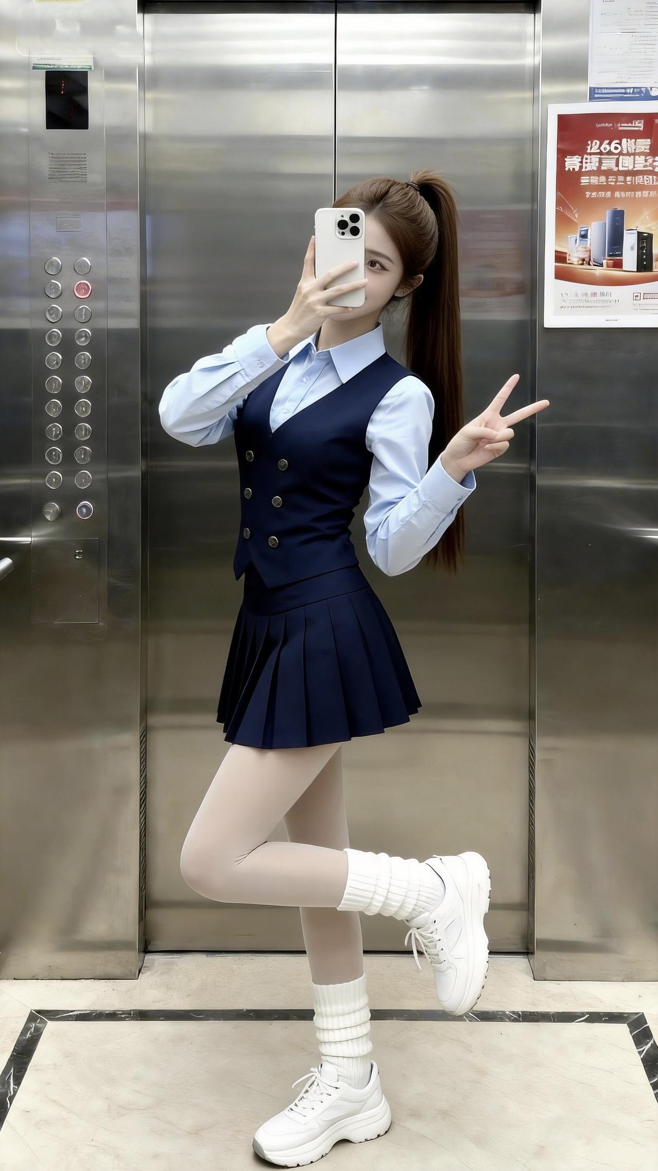这种校园甜飒风你们爱了吗?藏青马甲裹着学院风的利落,浅蓝衬衫一露又甜得清爽,百褶裙配配丝袜,飒里藏着初恋感的软!日常穿搭分享 校园风穿搭 甜美女孩 甜美穿搭