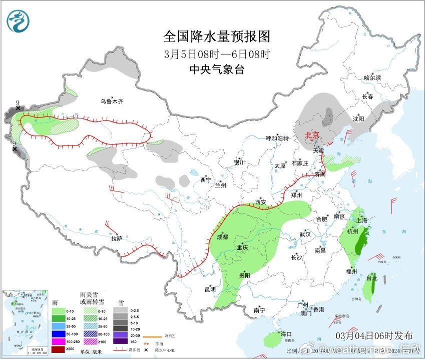 今明2天,北方地区因为有冷空气东南风回流+高空槽东移,华北等地将有一次降雪过程。降雪主要在4日中午-5日上午时段。大多是小雪-中雪,河北北部、北京北部等地部分地区有大雪(5~8毫米)。