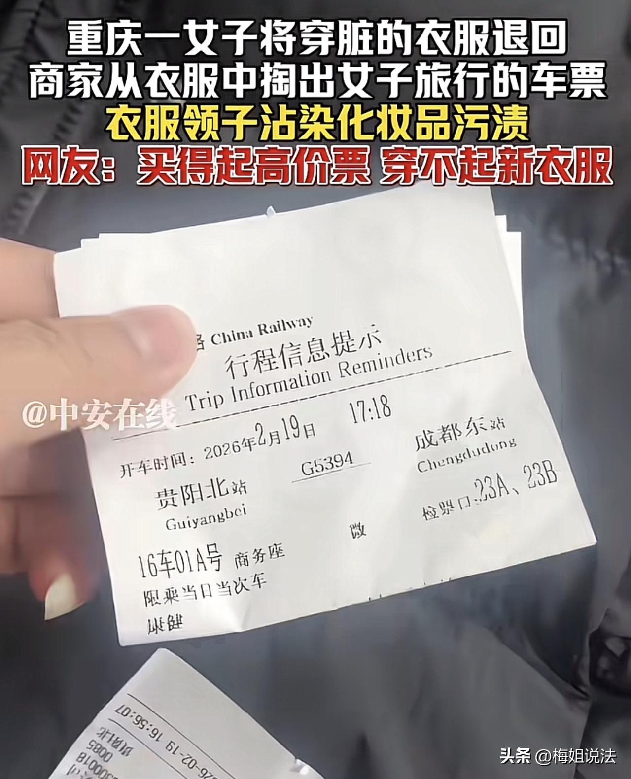 江苏,一商家年后刚开张就收到了一单退回的女装,打开一看,其上竟已浸满污渍!更离谱的是,衣服口袋中竟还躺着一张商务座车票!网友:有钱买商务座,没钱买新衣服? 事情是这样的。 年后刚开张,商家老板一到店就开始忙了起来。 打开仓库,过年期间退回的衣服全都堆在了这里。 没有抱怨,老板一件件拆封包裹,检查退回的衣服并准备二次售卖。 而也就是在这个时候,一抹扎眼的白色污渍映入老板眼帘。 只见衣服的领口,两片化妆品污渍赫然晕染其上。 又是这样的退单! 老板心下一沉,但手上却没有闲着。 而接下来发生的事情,则是彻底点燃了老板的火。 只见衣服的口袋中居然掏出了一张车票! 一张大年初三从贵阳北到成都东的商务座车票! “买得起800多的商务座,买不起一件衣服?” 老板简直要气死了,你说这要是穿不惯不喜欢退货也就罢了,你都弄成这副模样了还退呢? 而且当时对面这个买家下单发往的地址可是重庆! 看这架势,这估计都还是穿着跑到贵阳去玩了一圈,玩完然后又都坐着高铁回去了,这才卡着七天无理由退货的最后一点时间把衣服给退了回来的! 这简直就是欺人太甚! 商家气不过,却也碍于七天无理由退货的法律条款不好发作,最终只好将这件事曝光到了网上,想让大家伙们都来一起给评评理。 但是有一说一,对方将受污衣服退回的行为其实已然超出法律对消费者的保护范围! 根据《网络购买商品七日无理由退货暂行办法》第八条明文规定,消费者退回的商品应当完好。商品能够保持原有品质、功能,商品本身、配件、商标标识齐全的,视为商品完好。消费者基于查验需要而打开商品包装,或者为确认商品的品质、功能而进行合理的调试不影响商品的完好。 也就是说,如果退回的商品不符合“完好商品”的判定标准,商家是可以依法拒绝执行七天无理由退货的要求的! 而《网络购买商品七日无理由退货暂行办法》紧接着的第九条就规定了不完好商品的判断标准。 对超出查验和确认商品品质、功能需要而使用商品,导致商品价值贬损较大的,视为商品不完好。 具体判定标准如下: (一)食品(含保健食品)、化妆品、医疗器械、计生用品:必要的一次性密封包装被损坏; (二)电子电器类:进行未经授权的维修、改动,破坏、涂改强制性产品认证标志、指示标贴、机器序列号等,有难以恢复原状的外观类使用痕迹,或者产生激活、授权信息、不合理的个人使用数据留存等数据类使用痕迹; (三)服装、鞋帽、箱包、玩具、家纺、家居类:商标标识被摘、标识被剪,商品受污、受损。 也就是说,对方在寄回的这种被污染了的衣服在法律上属于“不完好商品”,根本就不符合七天无理由退货的法定前提,商家也就应该是有权依法拒绝该退货申请的! 而在这件事情被曝光到网络上之后,网友们也是迅速分成了两派。 有支持商家的网友说,这种人骨子里就是坏,自己是不能亏待的,小便宜也是一定要占的,这种人就应该扣他们的信誉分,扣完一律当作老赖处理! 也有支持买家的网友说,有些衣服本来就是刚穿上还行,穿了一会才会感觉不舒服啊,那不合身的衣服不能退,难道就让它丢在柜子里吃灰吗? 还有些中立的网友则是感慨,一颗老鼠屎坏了一锅粥,不仅是消费者,有很多无良商家一样可恶,行业的风气就是被他们这样的老鼠屎给败坏的! 那么对于这件事,您有什么看法?欢迎留言。 来源:中安在线