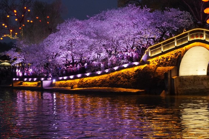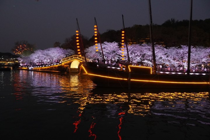 @梧桐雨:#春天好色彩#站在樱花谷的灯光下,好像闯进了宫崎骏的动画,无锡鼋头渚的夜樱,绝对是今年春天最值得打卡的视觉盛宴!樱花树下流光溢彩,倒影成双,五彩缤纷,玉树莹花,晶莹透亮,随手一拍都是大片,美了美了。虽然人挨人,走了很累,但是值了。