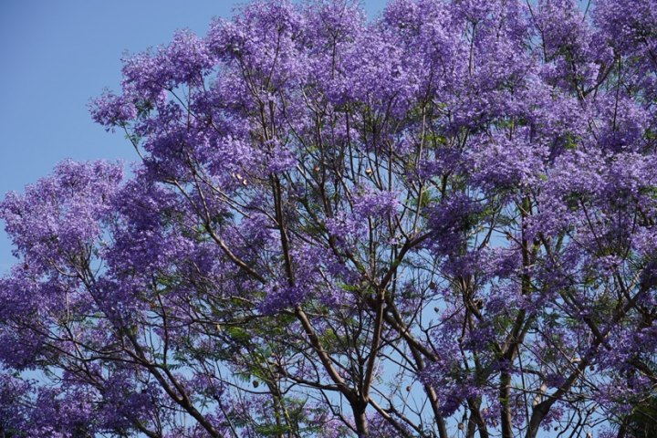 每年四月下旬到五月,盛放的蓝花楹总能成为昆明一景,吸引无数游客前往观看。满街盛放的蓝花楹,让昆明变身紫色花海,走在树下,头顶全是软绵绵的紫云,说人在花海游一点儿也不为过。她站在花底下,仰着脖子看了半天,最后在橙友圈里写道:“满树繁花就像淡紫色的云朵,置身其中,真的太美太梦幻了。”