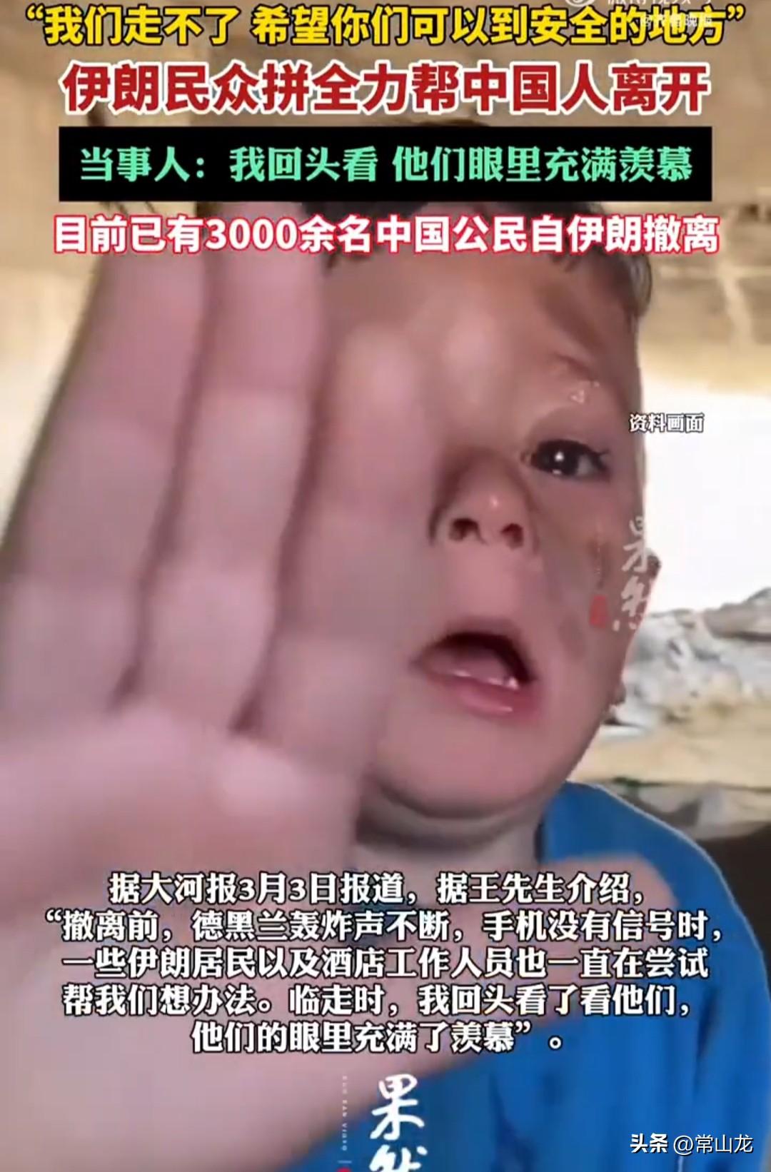 在战火纷飞,满目疮痍的德黑兰,一些普通市民和酒店工作人员冒着生命危险帮助中国公民撤离,在分手的那一刻,他们依依不舍地挥着手,眼神里充满羡慕:“我们走不了了,希望你可以到安全的地方。” 一句简简单单、平平淡淡的告白,听起来却如此振聋发聩,令人心碎 。 是呀,脚下是生他们养他们,他们祖祖辈辈生存的土地,他们走不了了,也不会走的。 想想80多年前的中国,我们的先辈,也是用这种充满羡慕的目光,挥手告别那些即将从战火纷飞的中国撤离的外籍人士。 我们坐在安静舒适的房间里,斜靠在沙发上,刷着手机了解发生在几千公里外的中东战乱,就好比1937年的美国人,惬意地坐在咖啡馆里,喝着香甜温热的咖啡,翻看报纸上刊登的发生在大洋彼岸的中日战争消息。 百年岁月流转,世界还是原来的世界,弱肉强食的丛林法则从未消失,强盗的屠刀依然高高举着。 唯一不同的,是我们,我们的祖国,早已不是当年那个积贫积弱、任人欺凌的国家了。 有国才有家,这句话从来不是一句空洞的口号,而是无数人在风雨飘摇中,用生命验证过的真理。 (素材来源:齐鲁晚报)