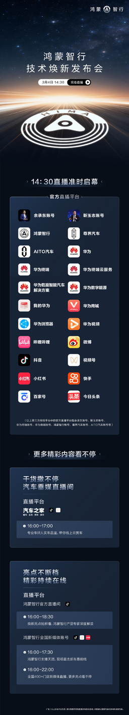 最近发布会真是一个接一一个啊,下午14:30鸿蒙智行技术焕新发布会新一代激光雷达