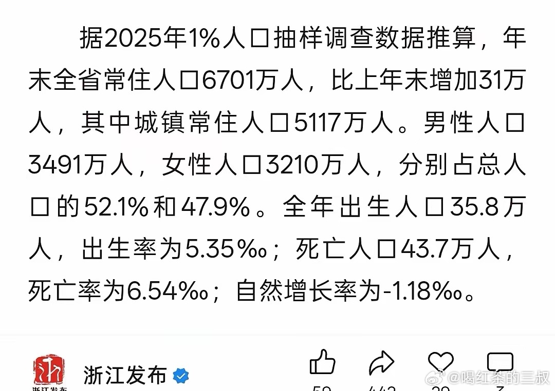 浙江省,2025年总人口6701万。出生人口35.8万,2024年出生人口41万。