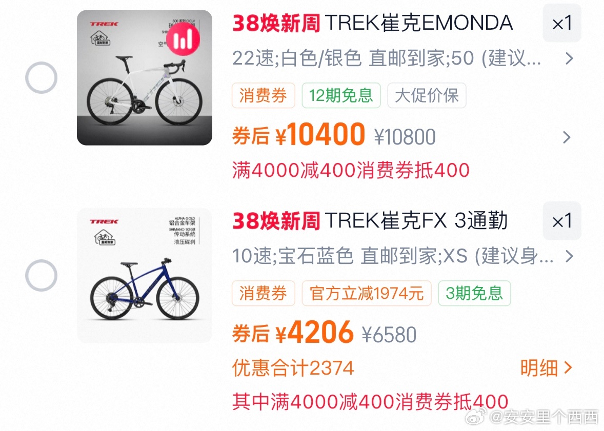 刚刚去试自行车,试着觉得合适,我问价格,老板说你上网看,网上什么价我这就什么价,说着我和他都打开了某宝和某东。