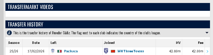 虎扑03月04日讯根据德转信息,武汉三镇以200万欧的价格从墨西哥球队帕丘卡签下委内瑞拉前锋洪德尔-卡迪斯。