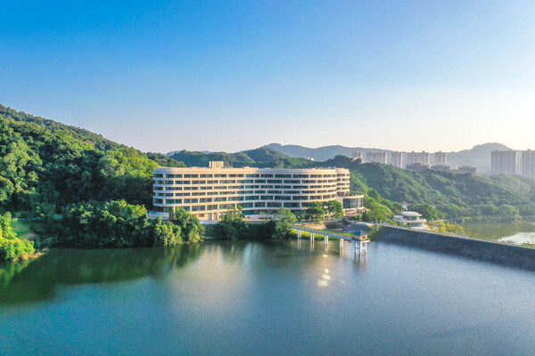 首先是整体规划与设计根植于传统东方自然建筑美学。这恰如君澜酒店董事长兼总裁、浙江省饭店业协会会长王建平所言:"深度自然"是中国式度假的时代高级感。广州黄埔君澜酒店从三个维度,为此写下了生动的注解:在选址理念上,酒店背倚水声水库,毗邻长岭国家登山健身步道、天鹿湖森林公园、萝岗香雪公园等多处自然与文化景观,构建出"1小时度假圈"。同时,酒店距广州东站、白云国际机场等交通枢纽仅约30分钟车程,高效衔接差旅动线,巧妙满足差旅人士"忙里偷闲"的需求。在建筑原则上,酒店采用园林式景观设计,从外部环境到建筑内部,通过层层递进的绿色空间营造,使建筑低调地融于自然画卷之中,最大程度保留原始地形地貌。在生态保护上,酒店注重建立与自然和谐共生的关系。置身于此,住客既可于6000㎡皇家草坪奔跑嬉戏,也可沿水声水库环湖步道九大打卡点探险寻涧,或漫步休闲湿地,与自然深度互动,在青山绿水间享受全方位休闲运动体验。