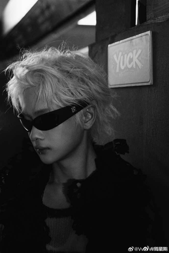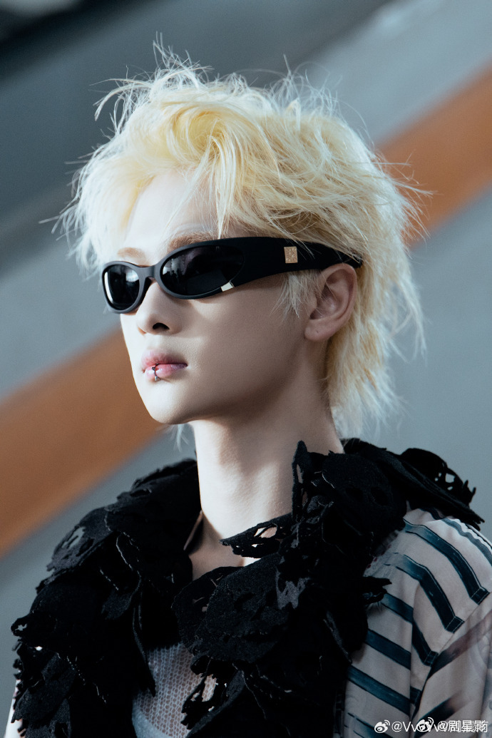 周震南戴墨镜适配度 周震南金发配墨镜真的是酷酷又帅帅的呀,完全就是被A到!和墨镜的适配度好高,太适合这种风格 周震南金发配墨镜