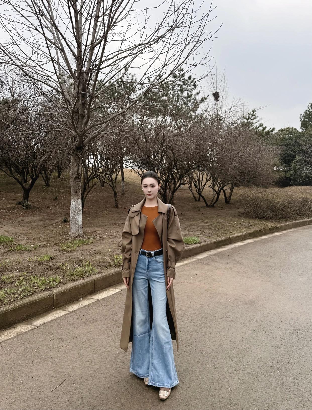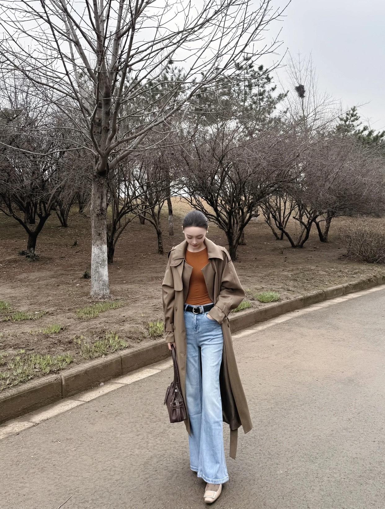 怎么穿,才能既舒适又高级?ii风衣牛仔裤风衣+牛仔裤”真是早春王炸组合,舒适又高级。经典的蓝色直筒牛仔裤,尤其是深蓝色,显瘦百搭,配风衣就是yyds。想更有设计感,白色牛仔裤是首选,清新还拉长腿部线条,搭针织衫或衬衫优雅满分。 阔腿牛仔裤是港风范儿标配,宽松遮肉又飘逸,配卡其色风衣和乐福鞋,适合春日午后闲逛。九分牛仔裤是“变高神器”,露出脚踝视觉上增高,搭高腰款优化比例。烟管牛仔收紧腿型,搭经典风衣超帅气。 今年皮革风衣流行起来,柔软有线条感,配浅洗直筒牛仔,街头感十足。像白百何用卡其色风衣配牛仔裤,内搭白衬衫,简单基础款也能美出新高度。