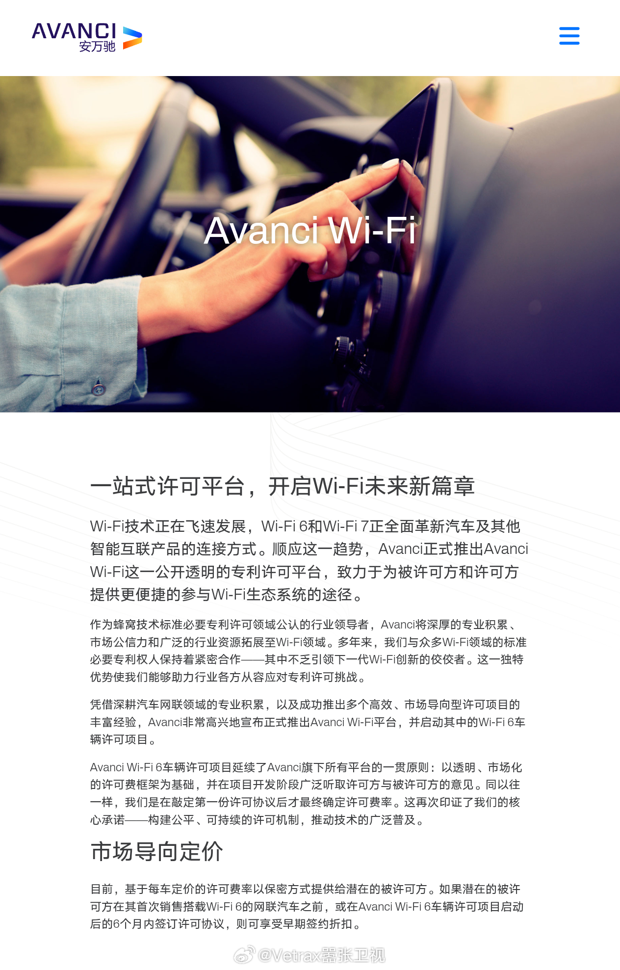 总算有了点魅族的好消息:就在今天,由众多通信巨头联合成立的专利池公司 Avanci 宣布成立了一个新的专利许可平台——Wi-Fi,涵盖 Wi-Fi 6 和 Wi-Fi 7 标准必要专利。同时宣布了该平台旗下首个落地的项目是 Avanci Wi-Fi 6 车辆许可项目,并与梅赛德斯·奔驰签署了首份许可协议。