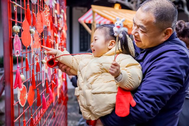 团圆的底色,是烟火相伴;文化的传承,是温情延续。游园会精心打造沉浸式穿越场景,让市民一秒“梦回江南古境”——入口廊道之上,汉服租赁摊位前人潮涌动,不少市民身着雅致汉服,头戴珠钗、身着襦裙,步履款款穿行于古园之中,衣袂翩跹间与亭台楼阁、红灯笼影相映成趣,仿佛穿越千年,赴一场古色古香的元宵之约。