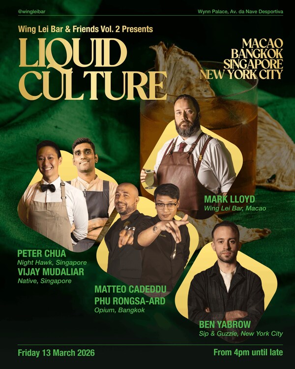 澳门2026年3月4日/美通社/--延续首次活动的热烈回响,永利吧年度企划"WingLeiBar&Friends"第二篇章将于3月13至14日登场,再次将永利皇宫化身为鸡尾酒爱好者的朝圣地。来自纽约、伦敦、曼谷、新加坡、新德里及雅加达六座城市的顶尖酒吧代表将齐聚一堂,带来结合客座调酒、专题对谈与文化交流的丰富周末体验,为澳门三月最受瞩目的鸡尾酒盛事揭开序幕。