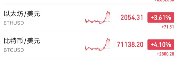 比特币跃升至近72000美元,反映出市场部分风险偏好正在回归。