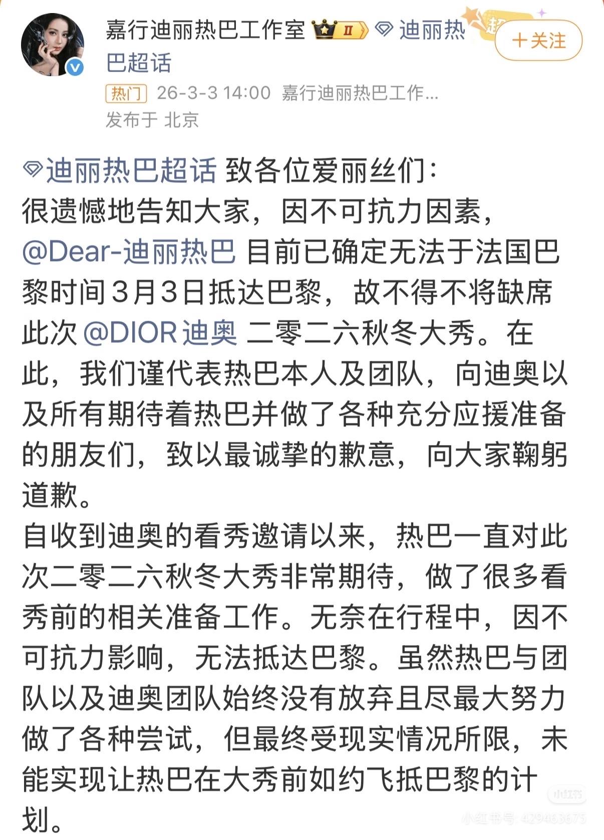 迪丽热巴滞留迪拜的警示:在战争面前,明星与平民无异,唯一的区别是…… 3月3日
