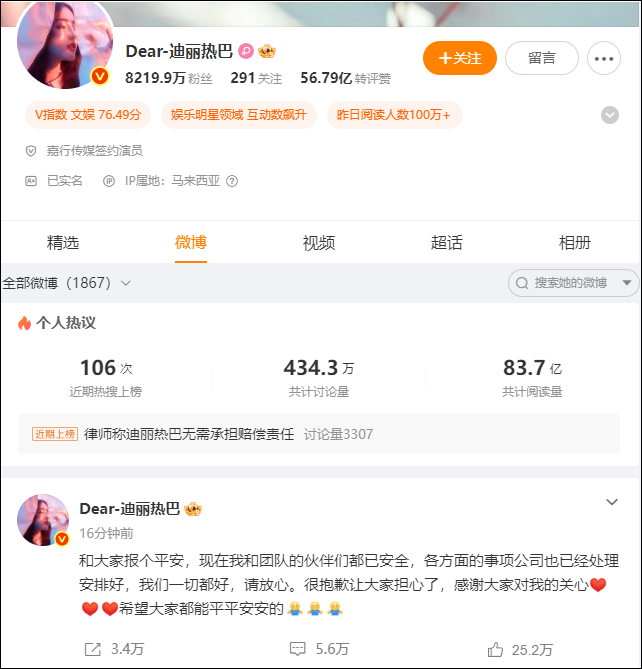 刚刚,迪丽热巴发文:“和大家报个平安,现在我和团队的伙伴们都已安全,各方面的事项公司也已经处理安排好,我们一切都好,请放心。很抱歉让大家担心了,感谢大家对我的关心,希望大家都能平平安安的。”其IP属地显示为马来西亚。