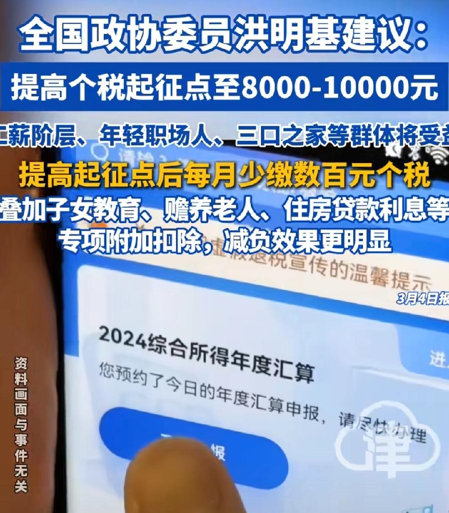 个税5000元起征点标准,2018年定的,过去7年了,工资收入、物价水平都提高了,个税标准也该修改提高了,直接提高到1万元,幅度太大,提到8000元比较合理,再过三年,到2028年,满10年再提高到1万元,这样比较合理,这个两会建议,之前董明珠已经提过了,现在又被提出来了,个税涉及工薪阶层,希望国家重视,税务局充分考虑采纳!