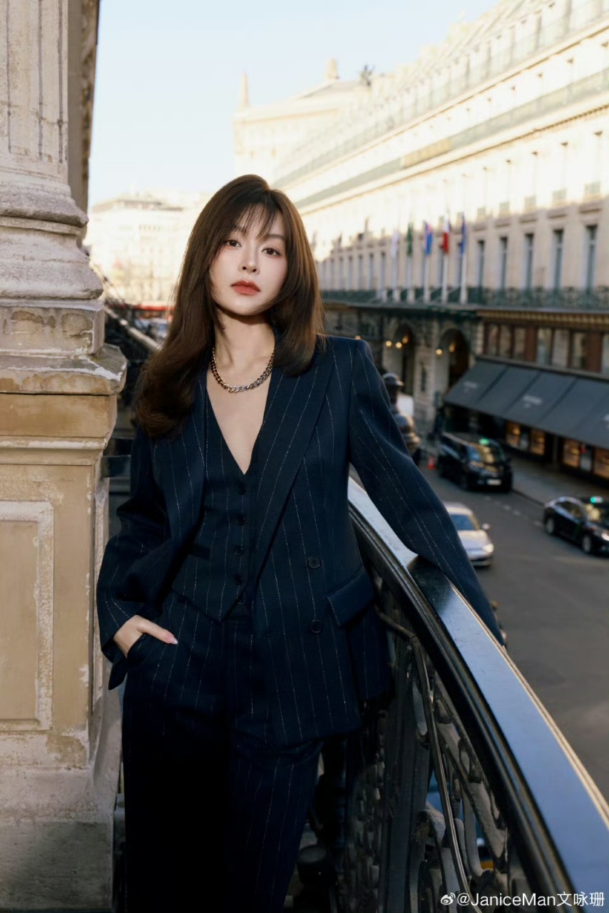 文咏珊太平洋宽肩 文咏珊在巴黎把高级感焊在身上! 宽肩窄腰比例逆天,气质清冷又贵