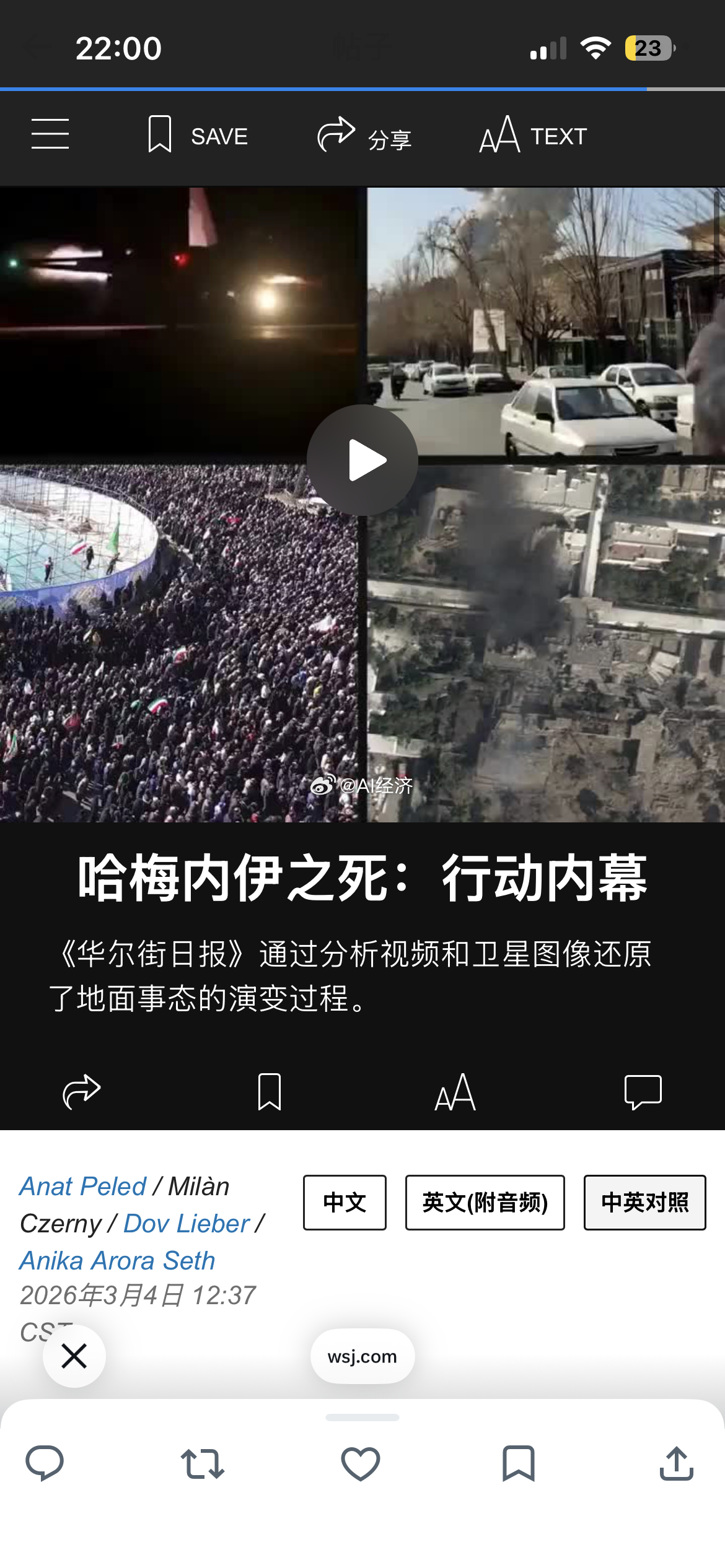 哈梅内伊之死 金融时报和华尔街日报 都做了详细报道V+可读 在考虑时候做成视频播