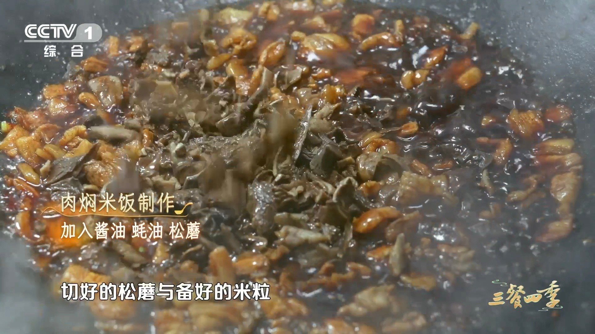 看视频看饿了系列碳水的神仙吃法 五花肉煸出的黄金油脂是灵魂,松蘑碎与酱汁的热油交