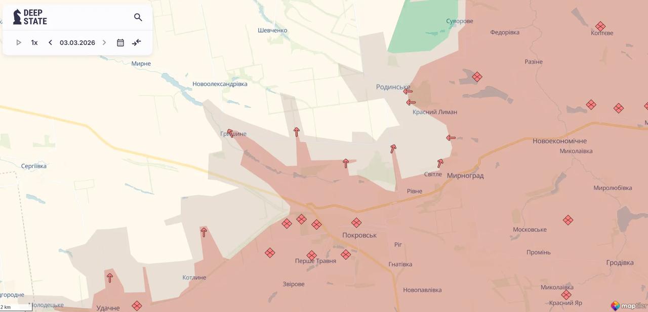 截至3月4日,在波克罗夫斯克都市区,乌克兰空降突击部队第7快速反应军团责任区,记录到占领军为加剧敌对行动做准备的迹象。根据作战数据,敌军正准备在早春加大攻势。“过去几个月,敌人一直在蓄力积累资源以供进一步利用。目前,敌军集中最大力量向波克罗夫斯克西北的赫里希内推进。定居点东部的战斗仍在继续。” 俄军持续对乌克兰部队施加压力,试图推进至赫里希内中部。此外,俄军并未停止试图夺取波克罗夫斯克和米尔诺赫拉德,但乌克兰军队在两市北部郊区控制了部分阵地。“总的来说,2月份,乌克兰军队消灭并击伤了超过1000人。俄罗斯人。报告称,他们还摧毁并击中了38门火炮和迫击炮、4辆装甲车、84辆机动车和机动车、5辆NRK坦克。