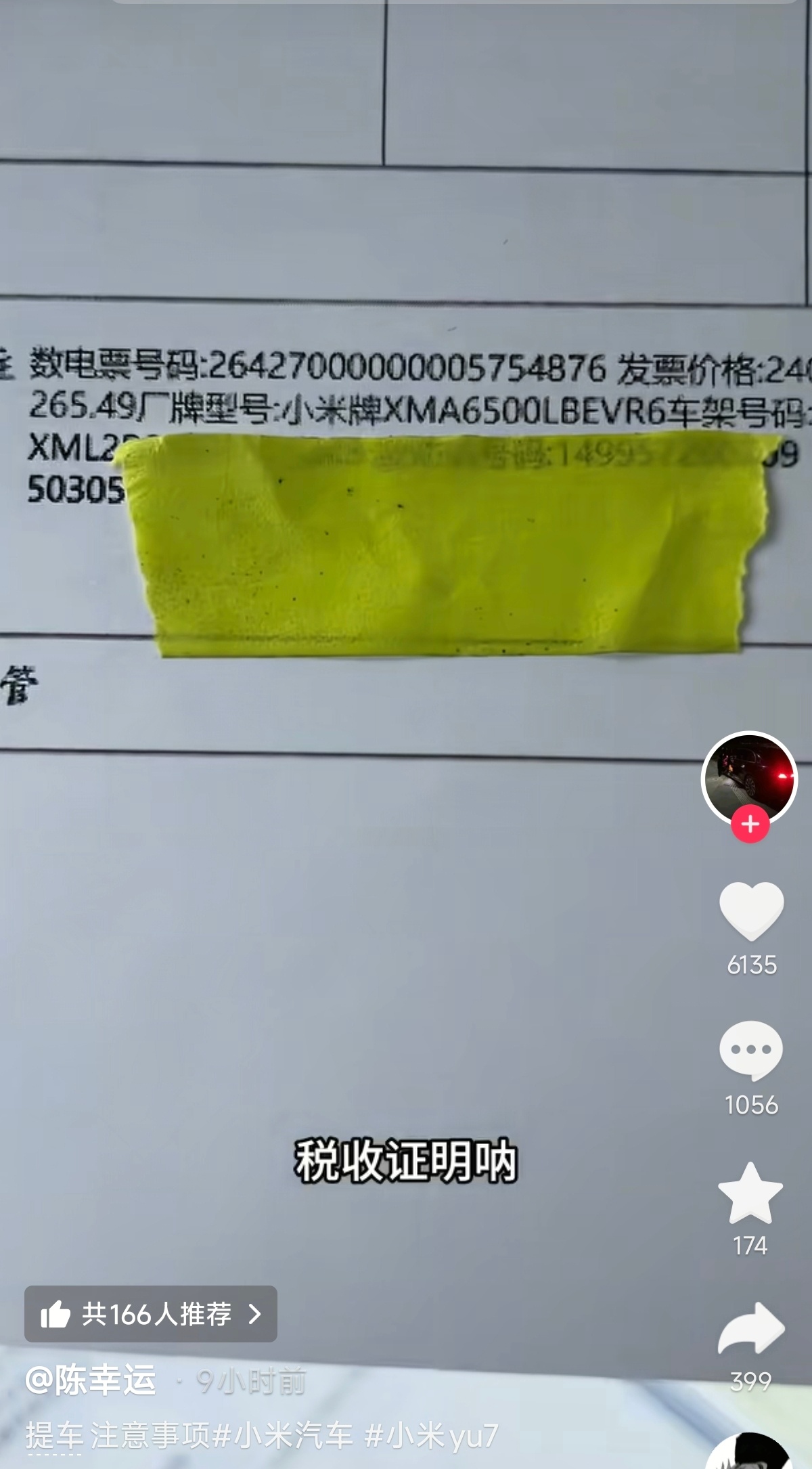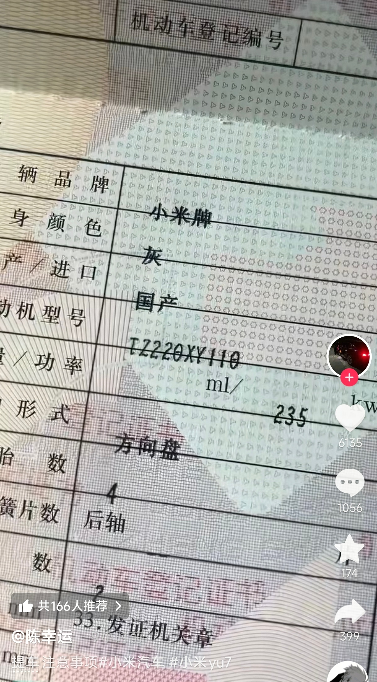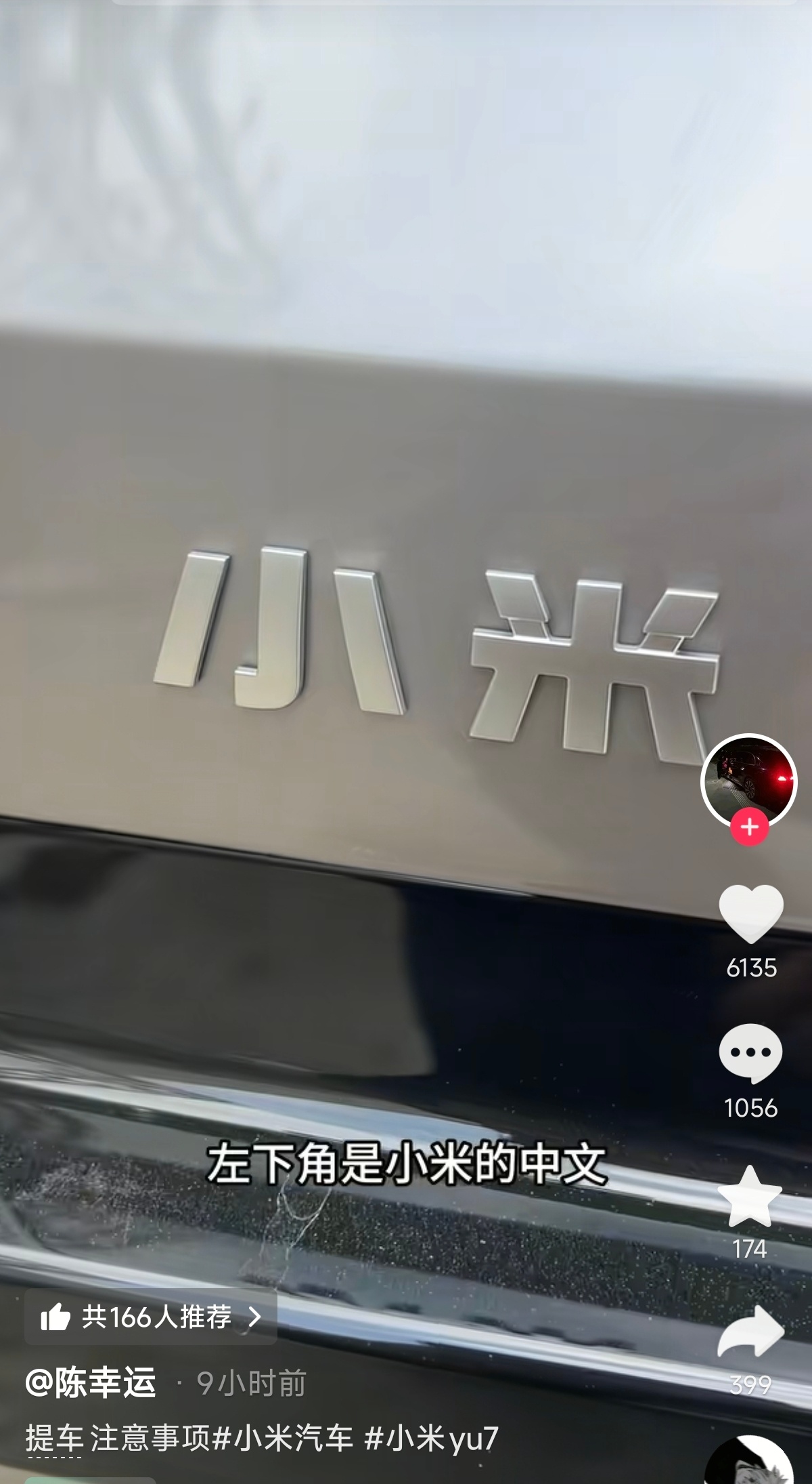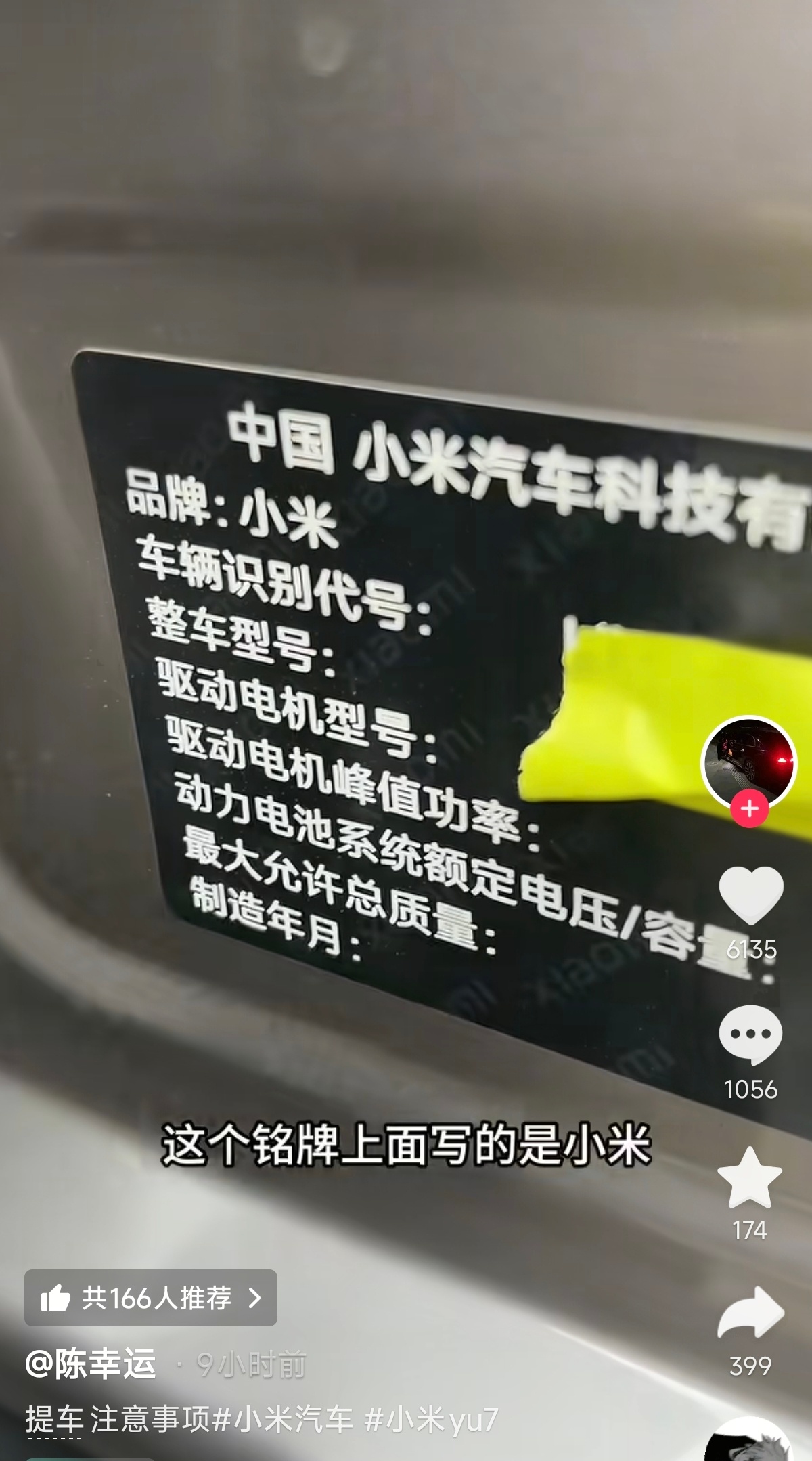 陈幸运提了一辆小米YU7,依照惯例,他开始对车辆的各种信息进行查看,