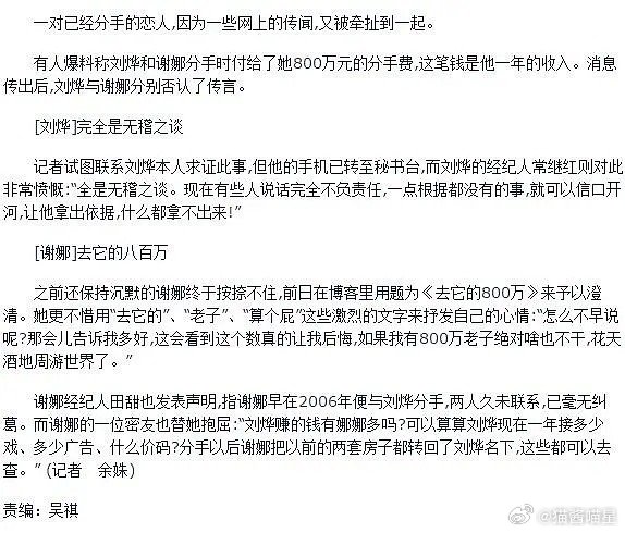 网传这是2007年谢娜发给主持人李静的短信。谢娜在内容中提到自己喜欢上一个男
