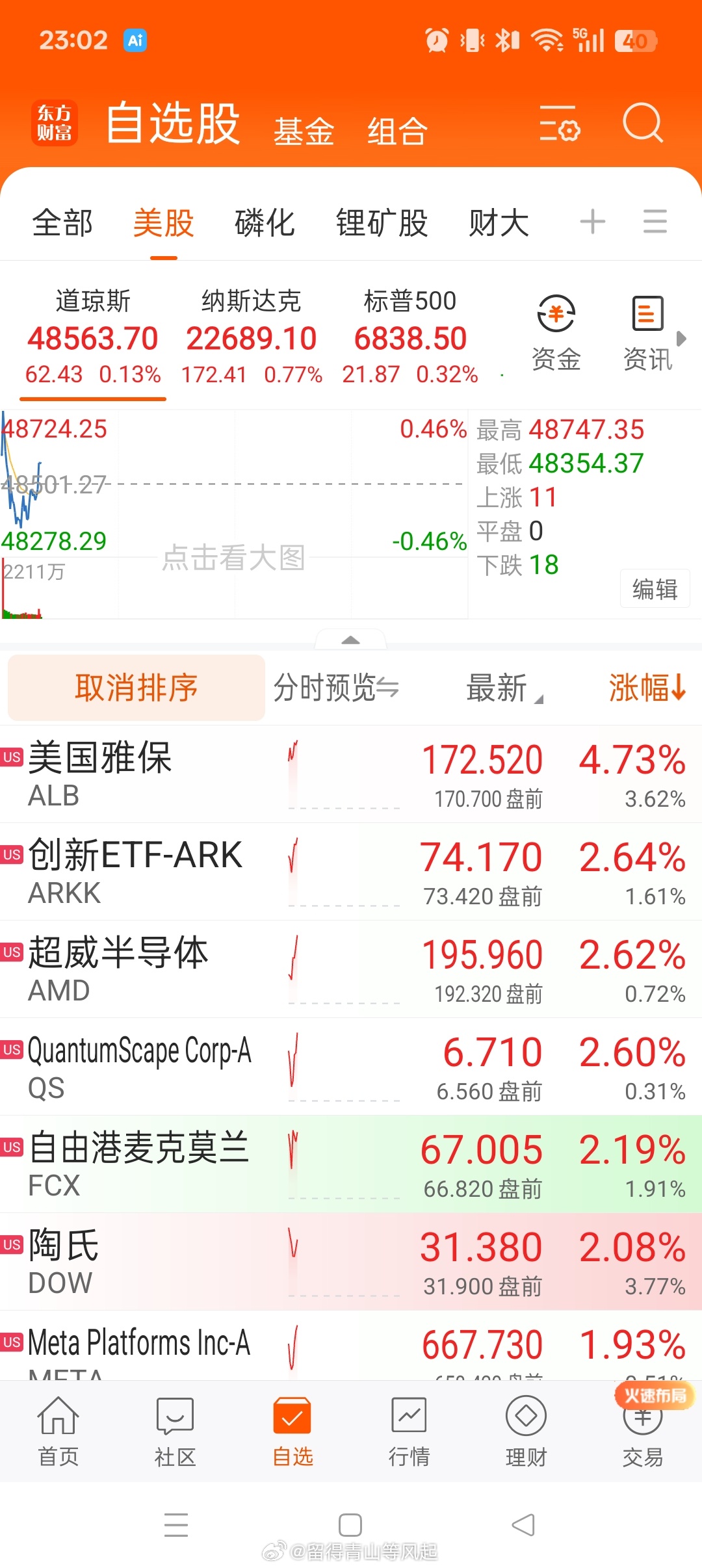 线性思维要不得,我的美股自选股,美国铝业从涨幅第一到现在跌幅第一。美国锂矿股,澳洲锂矿的合作方美国雅宝目前涨幅第一。