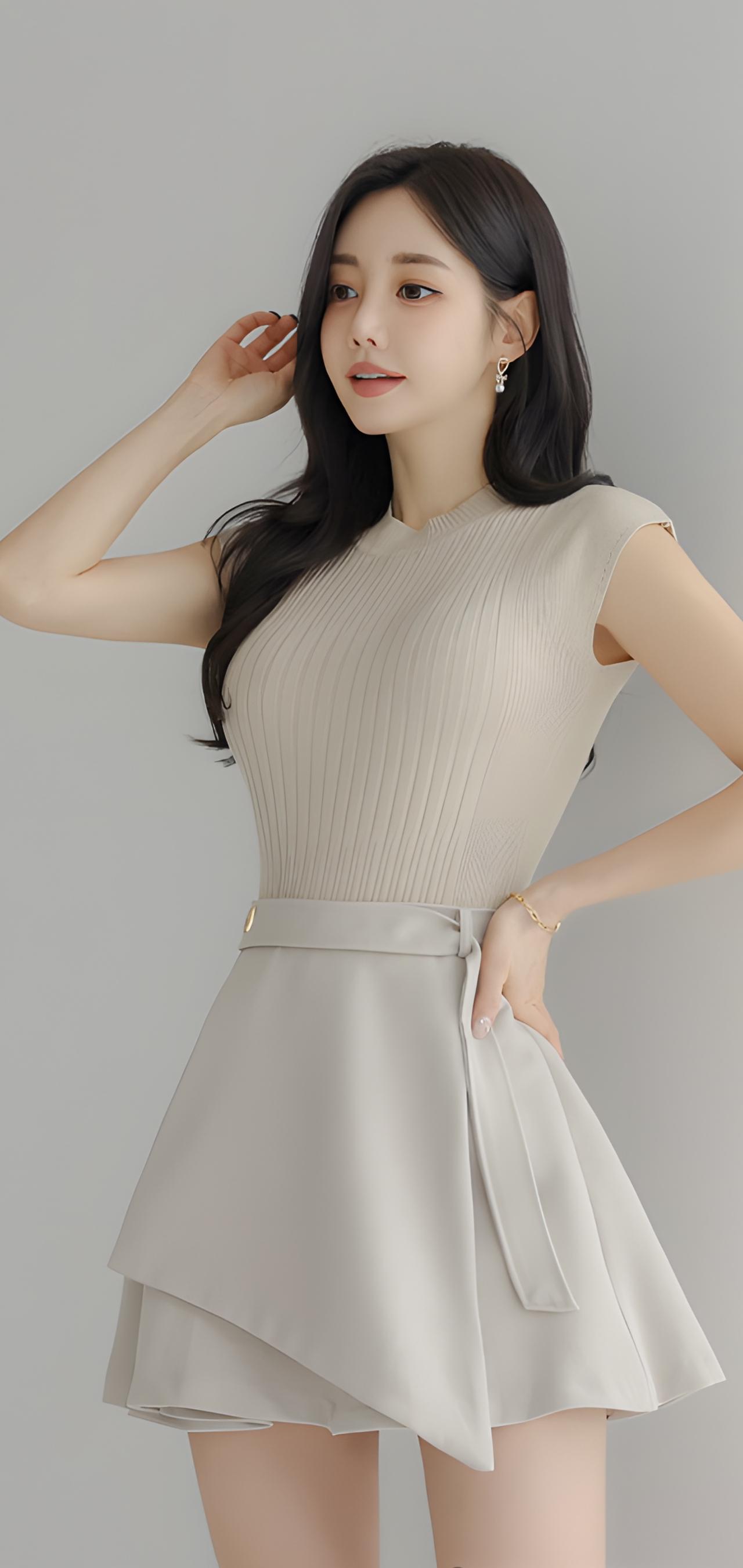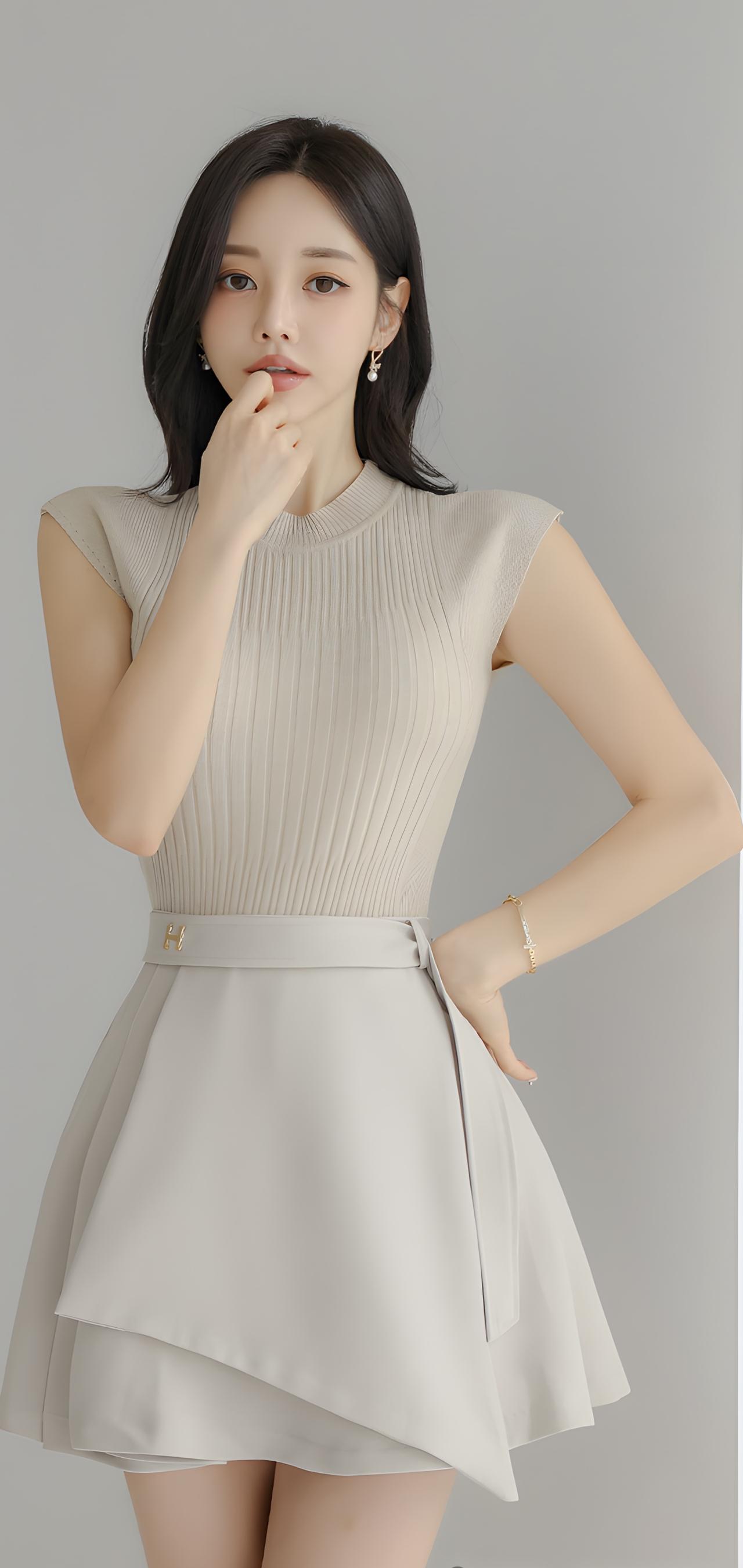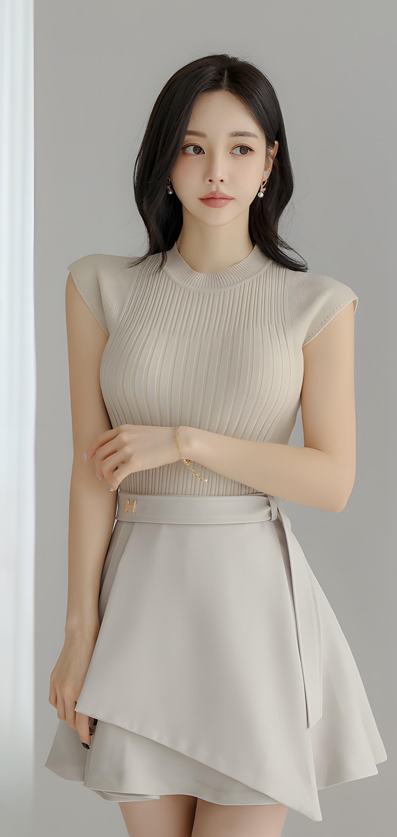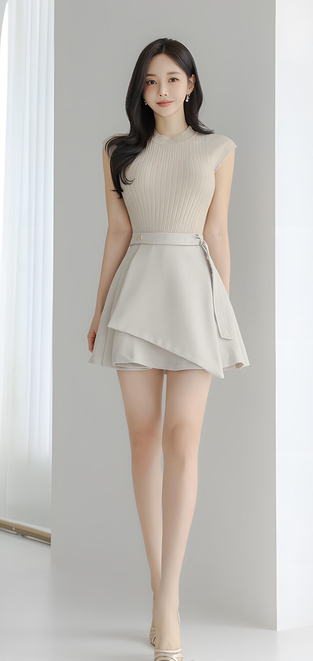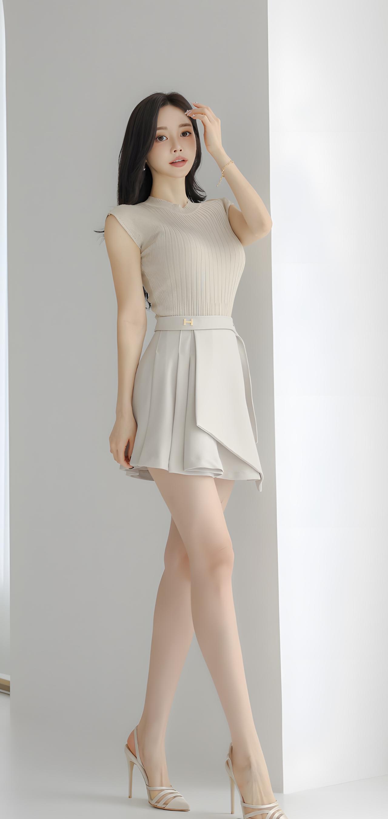 优雅气质穿搭,米色连衣裙搭配高跟鞋,简约大方。